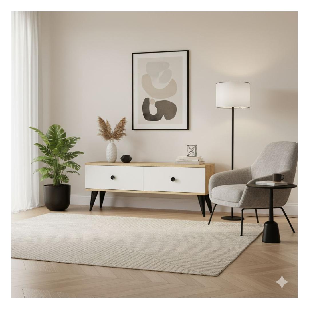 Kas otsite, kuidas tõsta oma elutoa stiili? Ära vaata kaugemale kui meie hämmastav telerialus Safiirvaik ja Valge. See telerialus ei ole lihtsalt mööbliese, vaid ka rafineerituse ja modernsuse väljendus. Tõsta oma eluruumiKujutage ette, et tulete pärast pikka päeva koju ja lõõgastute selle elegantse telerialuse ees. Sujuv disain ja kaunis värvikombinatsioon tõstavad koheselt teie eluruumi välimust. Kvaliteetne käsitööValmistatud 100% melamiinkattega puitlaastplaadist, on see telerialus mitte ainult stiilne, vaid ka vastupidav ja pikaealine. 18 mm paksus tagab stabiilsuse ja tugevuse, samas kui 120 cm laius pakub piisavalt ruumi teie teleri ja teiste meedia seadmete jaoks. Mitmekülgne ja praktiline57 cm laiuse ja 25,5 cm kõrguse riiuliga saate hõlpsasti hoida oma DVD-sid, raamatuid ja muid esemeid. Jala kõrgus 15 cm lisab elegantsi, samas kui võimalus see seina kinnitada tagab ohutuse ja stabiilsuse. Tooge Skandinaavia võlu oma kojuÜhtlane valge värv koos Safiirvaigu modernse uuendusega loob Skandinaavia inspireeritud ilme, mis on nii ajatu kui ka trendikas. Ärge jätke kasutamata võimalust muuta oma elutuba selle suurepärase telerialusega. Tellige oma täna ja kogege stiili ja funktsionaalsuse täiuslikku segu.Tehnilised andmed:Materjal: 100% melamiinkattega puitlaastplaatPaksus: 18 mmLaius: 120 cmKõrgus: 40,5 cmSügavus: 32 cmRiiuli laius: 57 cmRiiuli kõrgus: 25,5 cmJala kõrgus: 15 cmSaab kinnitada seinaVärv: Safiirvaik ja Valge Värv: Sapphire Oak White