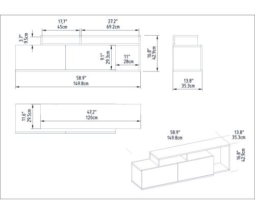 Width: 149,8 cm Height: 42,9 cm Depth: 35,3 cm
