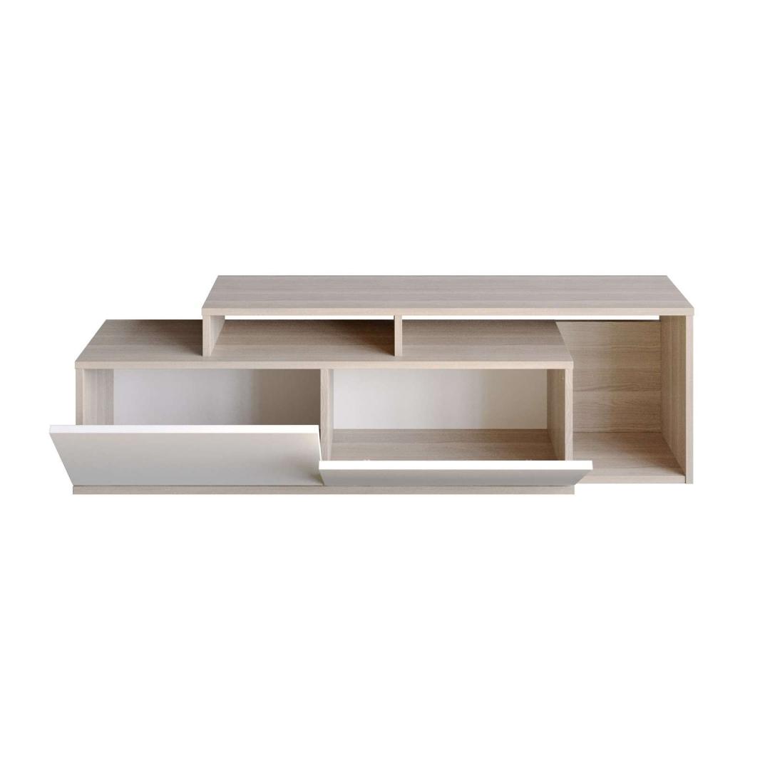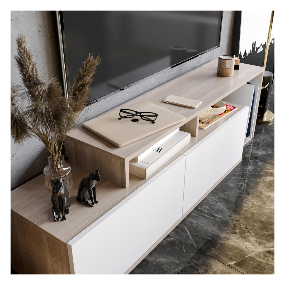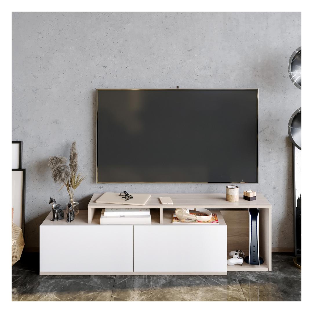 Upgrade your living room with our sleek and contemporary TV stand. Designed with a solid color concept, this stand adds a touch of modernity and novelty to any space. Its unique combination of Cordoba and White colors creates a visually appealing contrast that effortlessly complements any interior decor.
