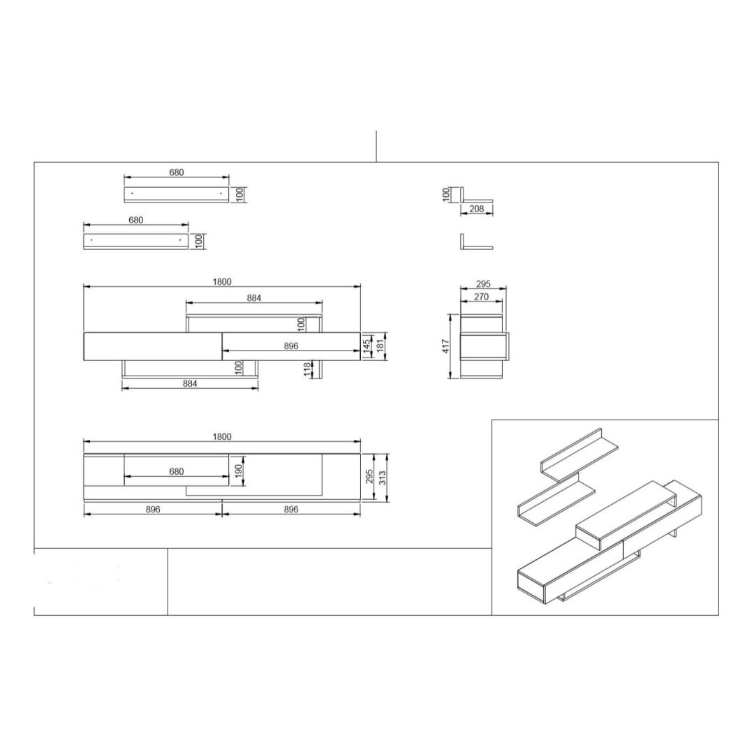 TV Unit Size: Width: 180 cm Height: 41,7 cm Depth: 29,5 cm