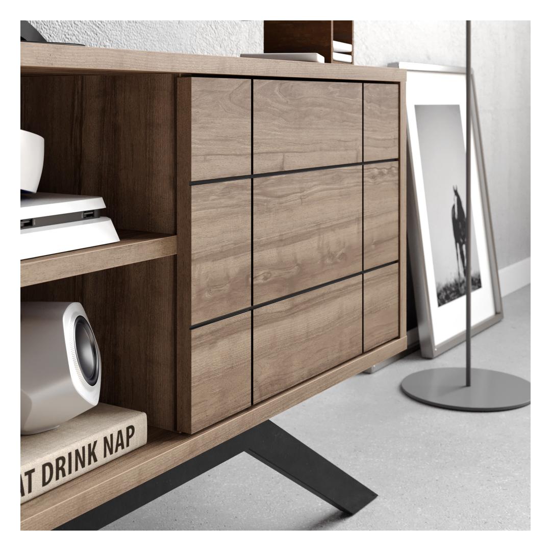 Crafted from 100% melamine coated particle board, this TV stand is built to last. The 18 mm thickness ensures exceptional sturdiness, providing a reliable and long-lasting solution for your entertainment needs. The metal legs not only add a touch of sophistication but also provide additional stability, ensuring your TV stand remains secure at all times.