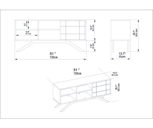 - Width: 130 cm, Height: 38.6 cm, Depth: 58.6 cm