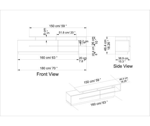 Width: 180 cm Height: 46,4 cm Depth: 38,9 cm