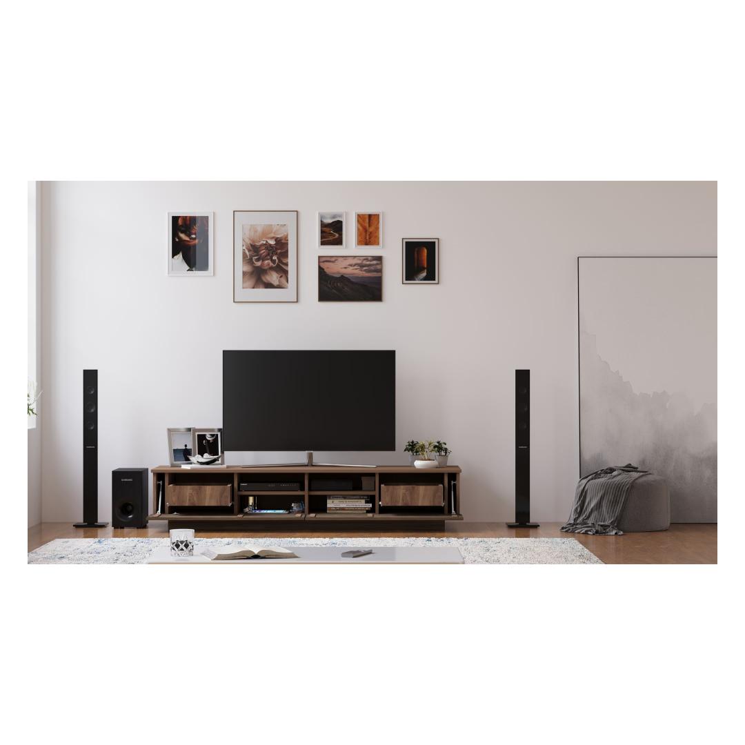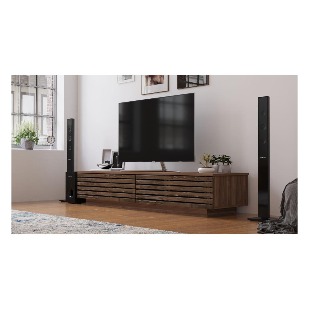 Muuda oma elutuba hubaseks ja stiilseks ruumiks meie 100% TAMME TV-alusega. Valmistatud parimast kvaliteetsest puidust, kiirgab see TV-alus elegantsi ja rafineeritust. Soe puiduvärv lisab teie kodu sisustusele looduslikku ilu, luues tervitava atmosfääri teile ja teie lähedastele.Elegantne disain teie kodusSelle TV-aluse sujuv ja kaasaegne disain tõstab koheselt teie elutoa välimust. Selle puhtad jooned ja minimalistlik esteetika teevad sellest mitmekesise mööblieseme, mis sobib igasuguste sisustustüüpidega, alates kaasaegsest kuni traditsioonilise.Lihtne kokkupanek teie mugavuse huvidesÜtle hüvasti keeruliste kokkupaneku juhiste ja frustratsiooni tekitavate isetegemise projektidega. Meie TV-alus sisaldab mugavat Minifix süsteemi, mis võimaldab lihtsat ja vaevatut kokkupanekut. Saate oma uue TV-aluse kiiresti üles seada, et saaksite kohe oma lemmiksaateid ja filme nautida.Tehnilised andmed:Materjal: 100% TAMMELihtne kokkupanek Minifix süsteemigaLaius: 180 cmKõrgus: 35 cmSügavus: 40 cmVärv: Puiduvärv(i) Värv: Wooden