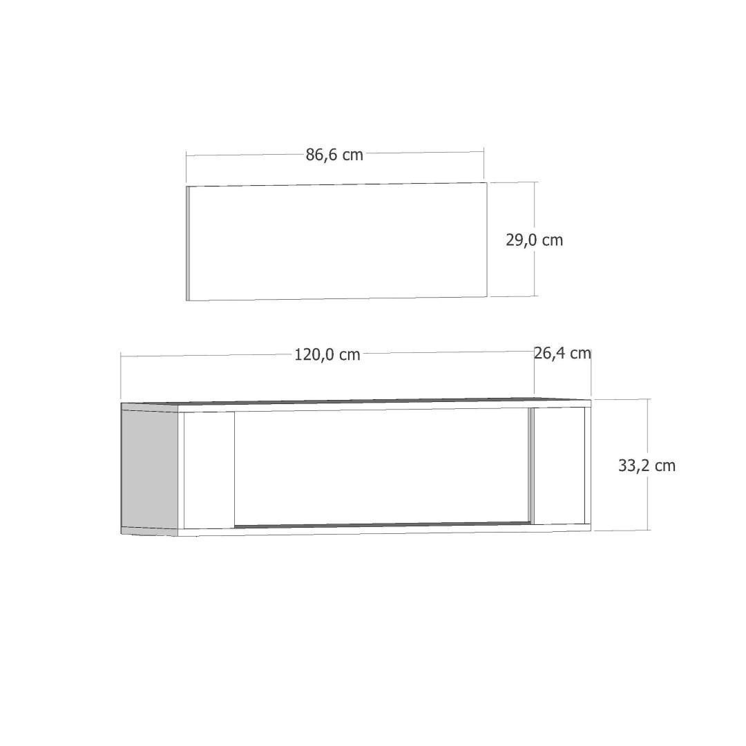 Width: 120 cm Height: 33,2 cm Depth: 26,4 cm