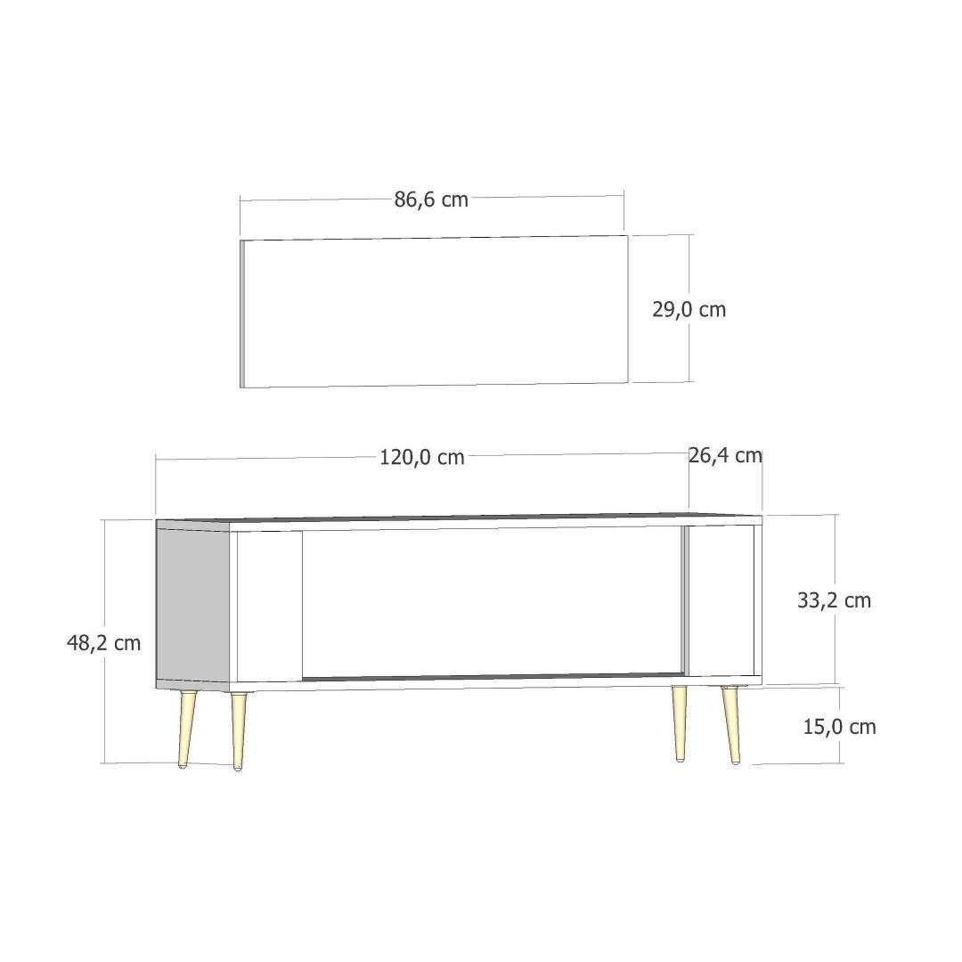 Width: 120 cm Height: 48,2 cm Depth: 26,4 cm