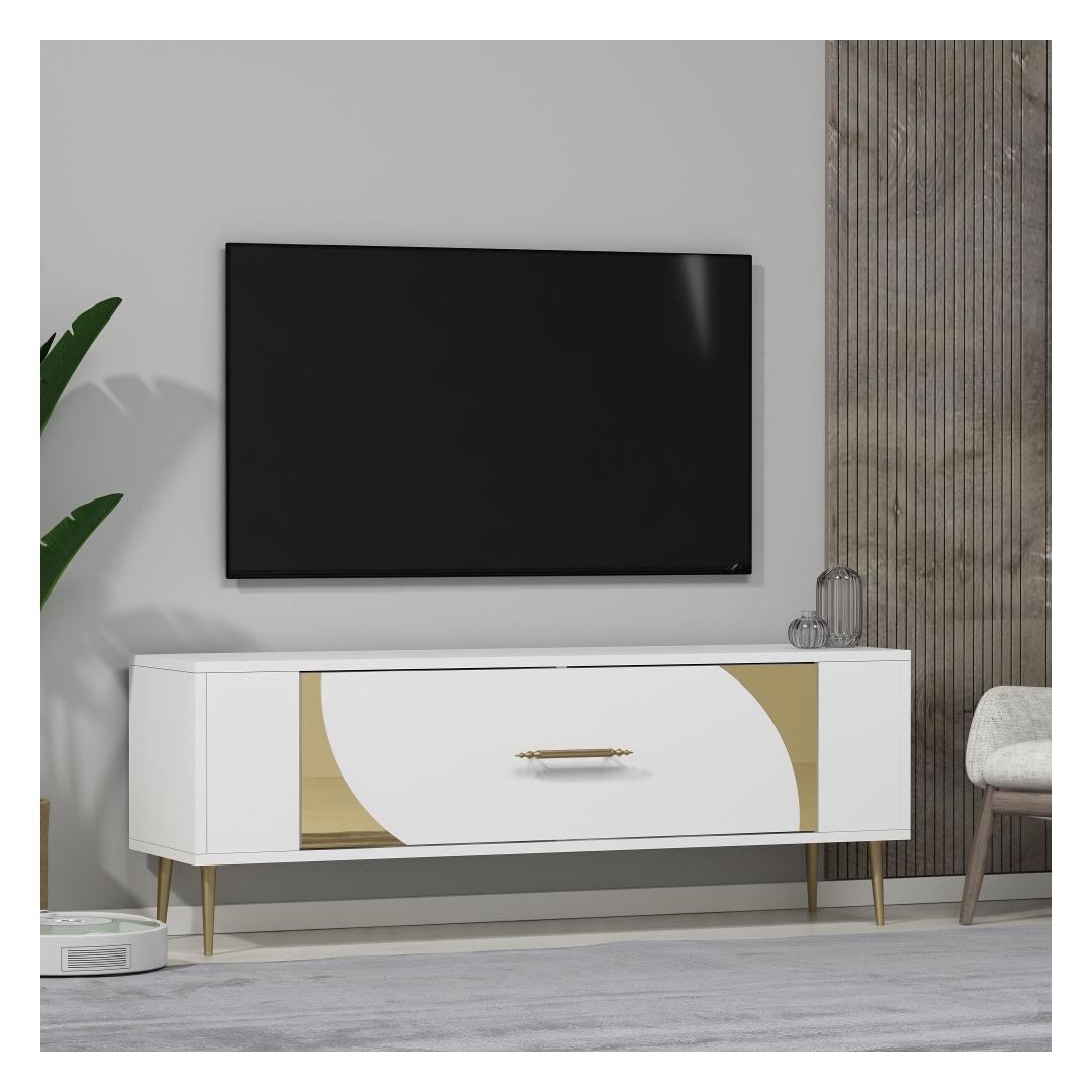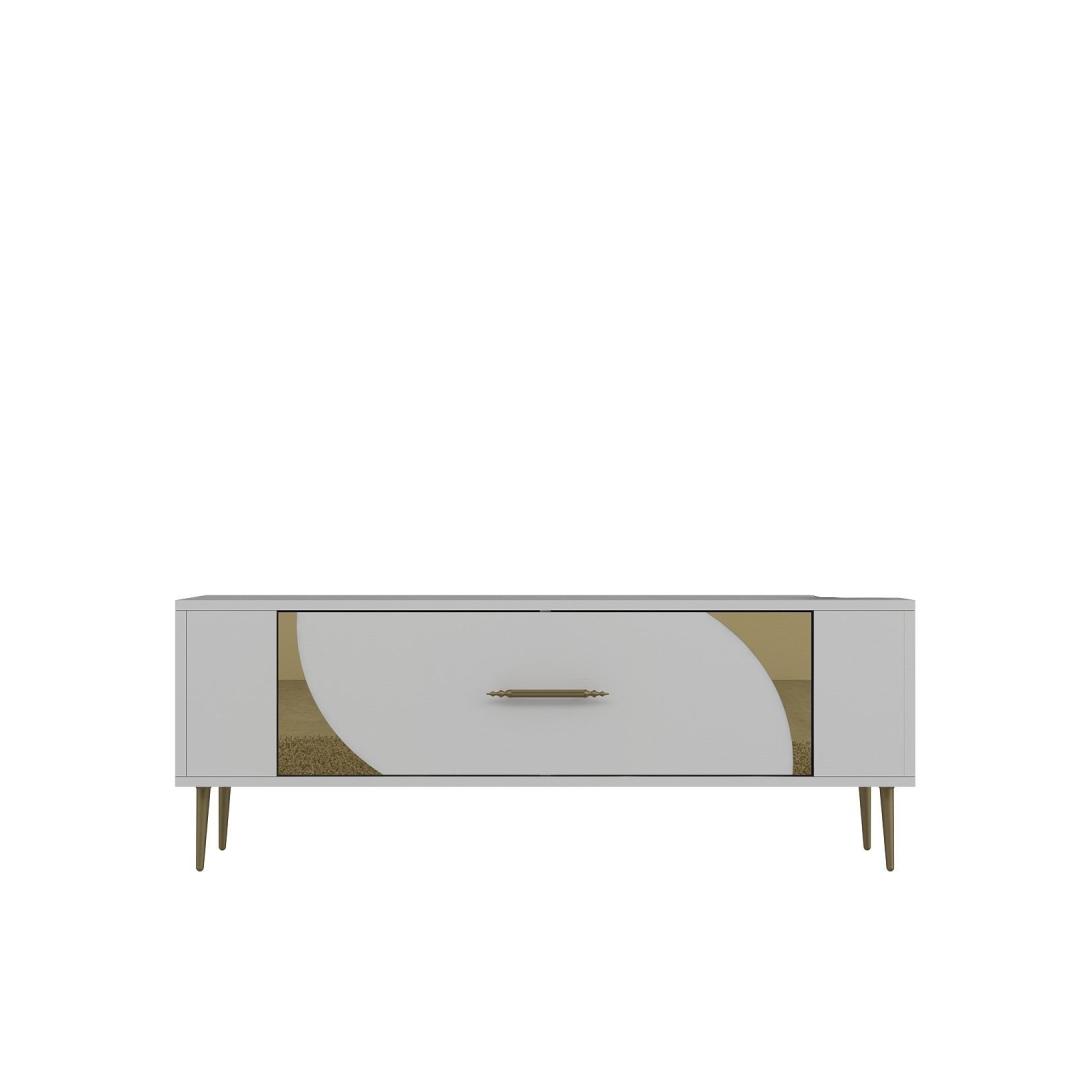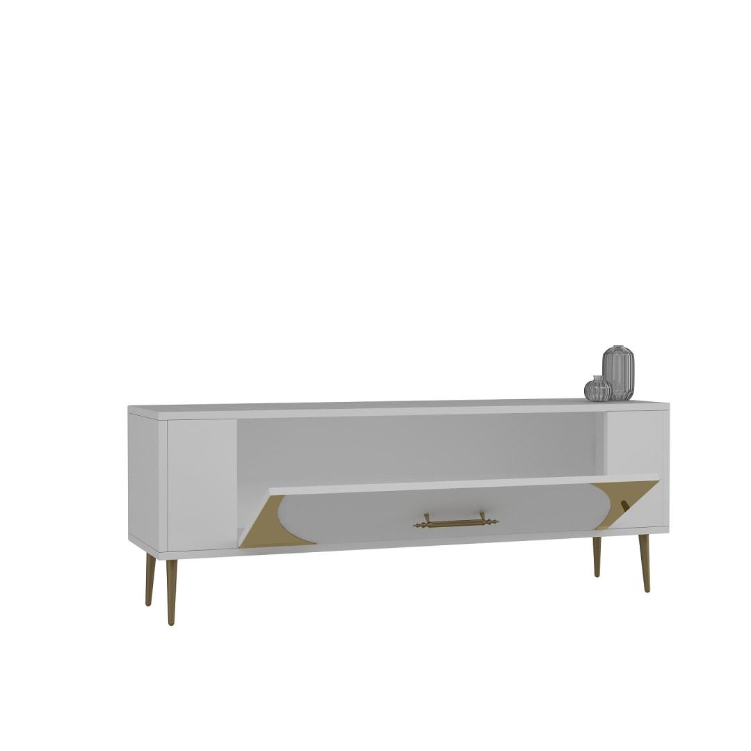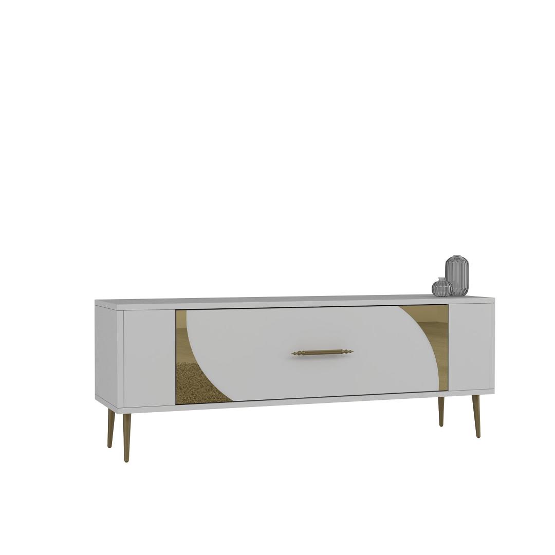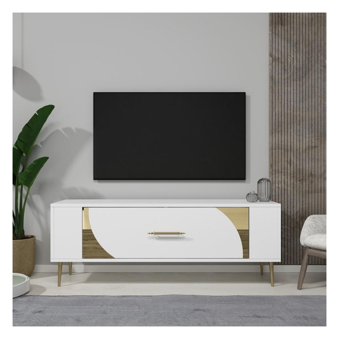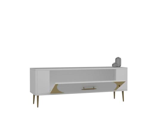 Muuda oma elutuba luksuslikuks ja stiilseks ruumiks meie valge ja kuldse teleripuldiga. See peen tükk ei ole lihtsalt lihtne televiisoripult, see on väljapaistev ese, mis tõstab kogu teie toa välimust. Valge ja kuldse värvi kombinatsioon õhkab elegantsust ja rafineeritust, muutes selle ideaalseks täienduseks igale kaasaegsele kodu sisustusele.Elukustage oma eluruumHüvasti igavate ja aegunud teleripultidega ja tere tulemast esemele, mis tõstab teie eluruumi koheselt esile. Selle teleripuldi elegantse disaini ja kõrgekvaliteediliste materjalide tõttu on see teie toa keskpunkt, mis tõmbab kõigi teie külaliste komplimente. Kvaliteetne käsitööSee 100% melamiiniga kaetud puitlaastplaadist valmistatud teleritugi ei ole mitte ainult uimastavalt ilus, vaid ka vastupidav ja kauakestev. Tugev konstruktsioon tagab, et teie televiisor ja muu elektroonika on turvaline ja kaitstud, samas kui rohke hoiuruum võimaldab teil hoida oma elutuba segadusteta. Versatiivne ja funktsionaalneLaiusega 120 cm, kõrgusega 48. 2 cm ja sügavusega 26. 4 cm, on see teleripult ideaalse suurusega enamikesse elutubadesse. Riiuli laius on 86. 6 cm ja riiuli kõrgus 29 cm pakuvad piisavalt ruumi telerile, mängukonsoolidele, helisüsteemile ja muule. Jalad on 15 cm kõrged ja neid saab stabiilsuse lisamiseks seinale kinnitada. Tehnilised üksikasjad:Materjal: materjal: 100% melamiiniga kaetud puitlaastplaatLaius: 120 cmKõrgus: 48,2 cmSügavus: 26,4 cmRiiuli laius: 86. 6 cmRiiuli kõrgus: 29 cmJala kõrgus: 15 cmSaab kinnitada seinaleVärv: valge ja kuldne Värv: White Gold
