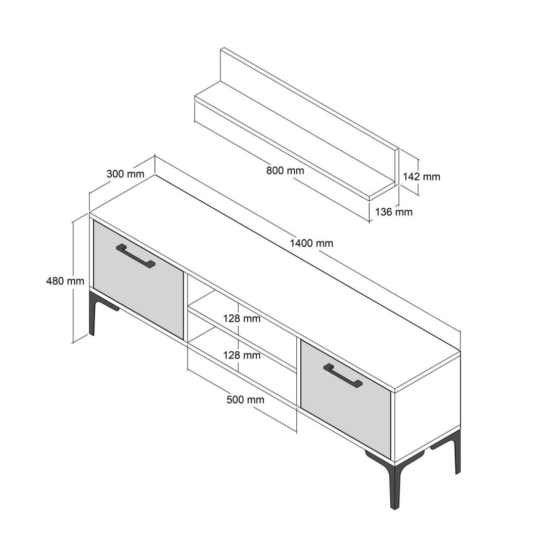 TV Stand: Width: 140 cm Height: 48 cm Depth: 30 cm