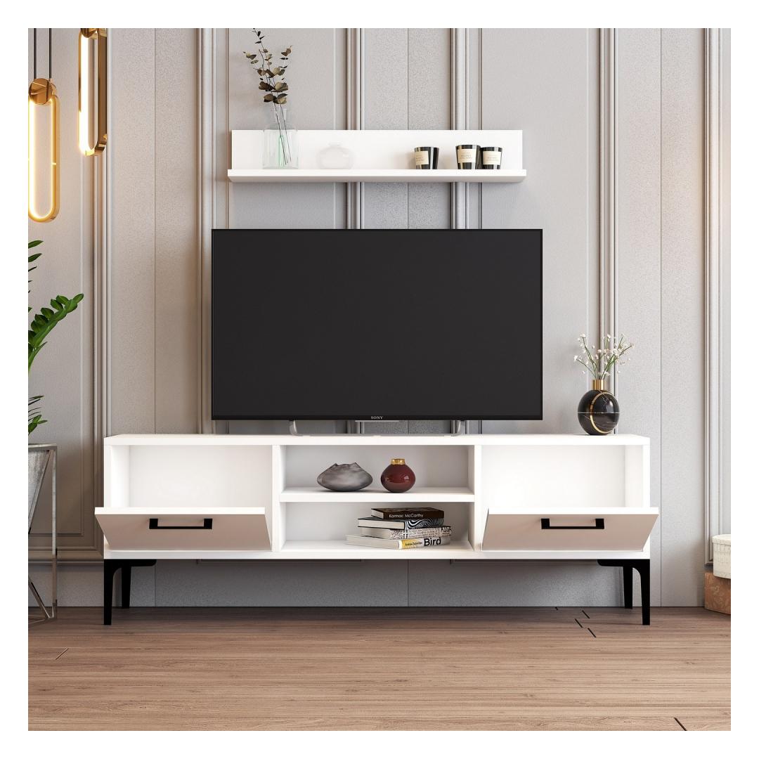 Transformeeri oma elutuba elegantse ja funktsionaalse televiisorigaSuurendage oma elutoa ilu meie uimastava teleriga. See ülima täpsusega valmistatud televiisor on disainitud lisama teie ruumi elegantsust, pakkudes samal ajal piisavalt ruumi kõigile teie meelelahutuslikele esmatähtsatele asjadele. Kogege võrratut vastupidavust ja kvaliteetiSee 100% melamiiniga kaetud puitlaastplaadist valmistatud televiisor on valmistatud kestma. 18 mm paksus tagab erakordse tugevuse ja vastupidavuse, mis teeb sellest usaldusväärse valiku aastateks. Rikkalik panipaik teie mugavuse tagamiseksTänu arvukatele riiulitele pakub see telerikapp rohkelt hoiuruumi, et hoida oma meediaseadmed, dvd-d ja muud tarvikud organiseeritult ja käeulatuses. Seinariiul pakub lisaruumi oma lemmikdekoratiivsete esemete esitlemiseks, lisades teie elutuppa isikliku tooni. Sleek disain metalljalgade ja plastist käepidemegaSelle telerikapi elegantset disaini täiendavad metalljalad, lisades teie elutoa sisustusele moodsa puudutuse. Plastikust käepide lisab peene, kuid stiilse elemendi, muutes kappide avamise ja sulgemise lihtsaks. Looge ajatu välimus valge värvigaTelerikapp on kujundatud ilusas valges värvitoonis, mis lisab igasse elutuppa elegantsi. Neutraalne toon sulandub sujuvalt mis tahes sisustusstiiliga, luues ajatu välimuse, mis ei lähe kunagi moest välja. Tehnilised üksikasjad:Materjal: Materjal: Materjal: Materjal: Materjal: Materjal: Materjal: Materjal: materjal: 100% melamiiniga kaetud puitlaastplaatPaksus: 18mmTeleri statiivi mõõtmed: Laius: 140cm, kõrgus: 48cm, sügavus: 30cm.Seina riiuli mõõtmed: 2cm, sügavus: 13. 6cm.Metallist jalad lisavad stabiilsustPlastikust käepide lihtsaks juurdepääsuksArvukad riiulid pakuvad rohkelt hoiuruumi Värv: White