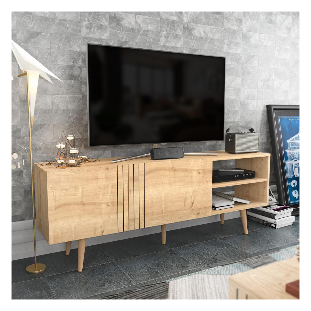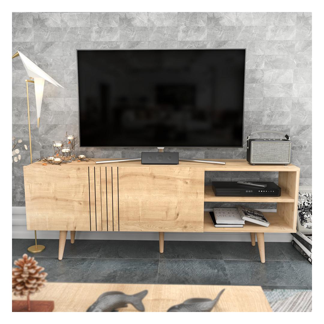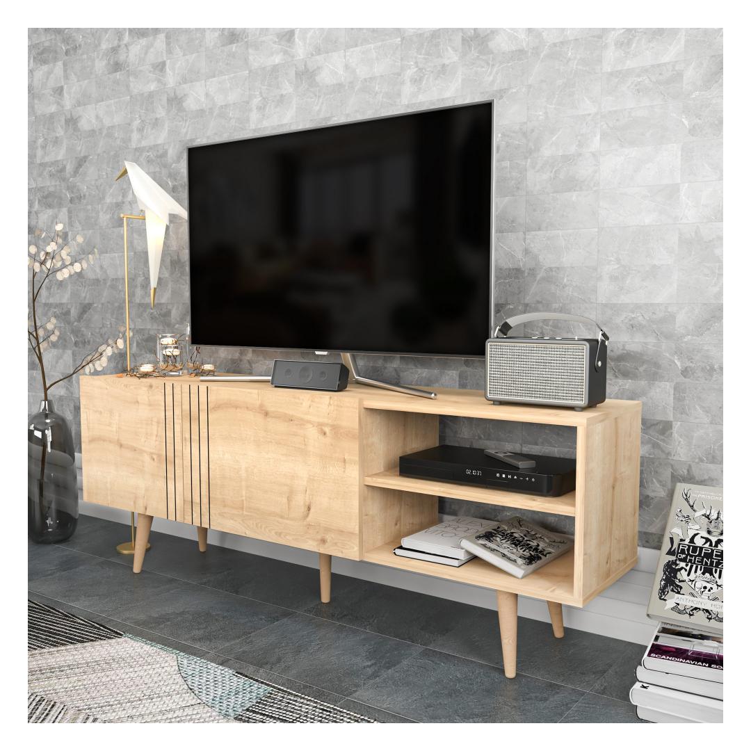 Välistage oma eluruumi elegantse safiirist teleripuldigaMuuda oma elutuba stiilseks ja elegantseks elupaigaks meie safiirist teleripuldiga. See peen mööblitükk on loodud nii, et see mitte ainult ei hoia turvaliselt teie televiisorit, vaid ka tõstab teie ruumi üldist esteetikat. Võrratu elegants ja vastupidavusSee 100% melamiiniga kaetud puitlaastplaadist valmistatud teleritugi on erakordselt vastupidav ja kauakestev. Stiilne safiirivärv lisab igasse ruumi külluslikkust, muutes selle ideaalseks keskpunktiks teie meelelahutusruumi. Rikkalik hoiuruum teie meelelahutusvahendite jaoksSee 160 cm laiune ja 35 cm sügavune teleripult pakub piisavalt ruumi teleri, mängukonsoolide, helisüsteemide ja muu jaoks. 18 mm paksus tagab vastupidavuse, mis võimaldab teil oma seadmeid kindlalt hoiustada. Lihtne kokkupanek ja muretut hooldustöödMeie safiirist tv-jalamu on disainitud teie mugavust silmas pidades. Lihtsalt järgitavad kokkupaneku juhised muudavad seadistamise imelihtne, nii et saate oma uut mööblit kohe nautida. Lisaks muudab melamiinkate puhastamise imelihtne, tagades, et teie teleripult jääb puutumatuks ja ilusaks aastateks. Tehnilised üksikasjad:Materjal: Materjal: Materjal: Materjal: Materjal: Materjal: Materjal: Materjal: materjal: 100% melamiiniga kaetud puitlaastplaatPaksus: 18 mmLaius: 160 cmSügavus: 35 cmKõrgus: 38,6 cmVärv: Sapphire Värv: Sapphire