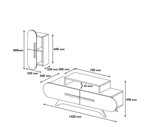 Tv Unit Size: Width: 145 cm Height: 49,8 cm Depth: 36,8 cm
