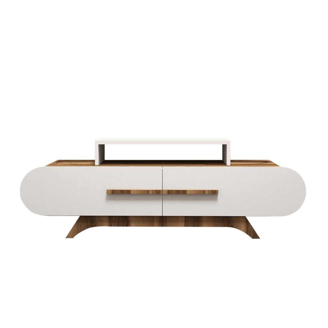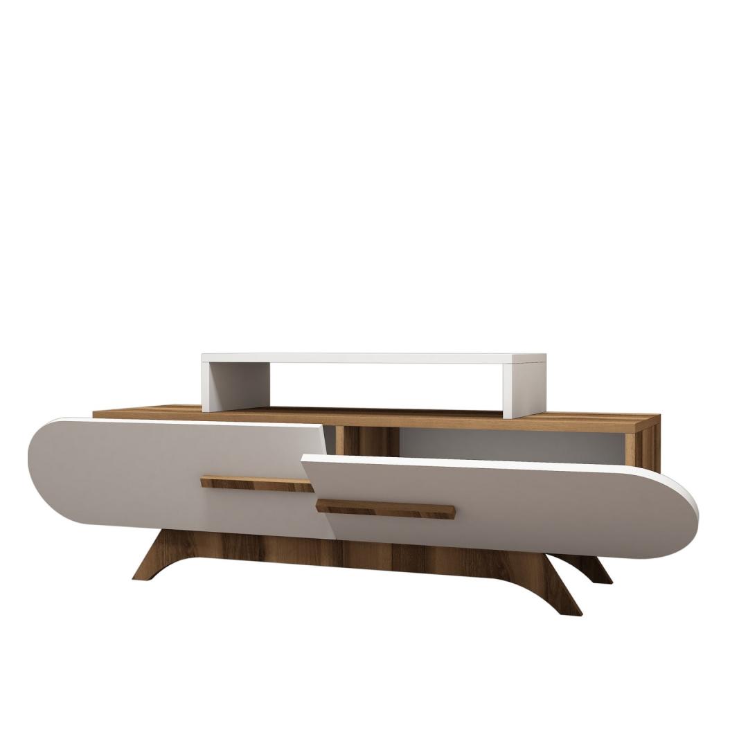 Välistage oma eluruumi kaasaegse ja uudse teleripuldigaKas olete väsinud oma vananenud ja segast elutoast? uuendage oma ruumi meie moodsa ja uudse teleripuldiga. See televiisoripult on loodud selleks, et tuua teie koju elegantsi ja rafineeritust, ning on ideaalne täiendus igale kaasaegsele sisustusele. Looge stiilne ja organiseeritud meelelahutuskeskusTänu arvukatele riiulitele pakub see televiisoripult piisavalt hoiuruumi kõigile teie meelelahutusvahenditele. Alates dvd-dest ja mängukonsoolidest kuni puldi ja helisüsteemini saate kõike hõlpsasti organiseerida ja käeulatuses hoida. Hüvasti segaste kaablite ja takerdunud juhtmetega!Kogemused võrratu vastupidavus ja kvaliteetSee 100% melamiiniga kaetud puitlaastplaadist valmistatud teleritugi on ehitatud kestma. 18 mm paksus tagab tugevuse ja stabiilsuse, mis võimaldab teil oma telerit ja muid elektroonikaseadmeid turvaliselt selle kohale paigutada. Võite kindel olla, et see teleripult peab vastu. Välistatav disain teie mugavuse tagamiseksSee teleritugi ei paku mitte ainult funktsionaalsust, vaid on ka mitmekülgse disainiga. Pähklipuu ja valge värvikombinatsioon lisab igasse tuppa elegantsust, samas kui elegantsed ja kompaktsed mõõtmed muudavad selle sobivaks väikestesse ruumidesse. Lisaks saab seda hõlpsasti seinale kinnitada, et suurendada stabiilsust ja turvalisust. Tehnilised üksikasjad:Materjal: Materjal: Materjal: Materjal: Materjal: Materjal: Materjal: Materjal: materjal: 100% melamiiniga kaetud puitlaastplaatPaksus: 18 mmLaius: 145 cmKõrgus: 49,8 cmSügavus: 36,8 cmRiiuli suurus: Laius: 70 cm, kõrgus: 11 cm, sügavus: 30 cm.Värv: pähkelpuu ja valgeUuendage oma eluruumi juba täna meie moodsa ja uudse teleripuldi abil. Kogege täiuslikku segu stiilist, funktsionaalsusest ja vastupidavusest. Tellige kohe ja muutke oma kodu elegantsi ja organiseerituse paradiisiks! Värv: Walnut White
