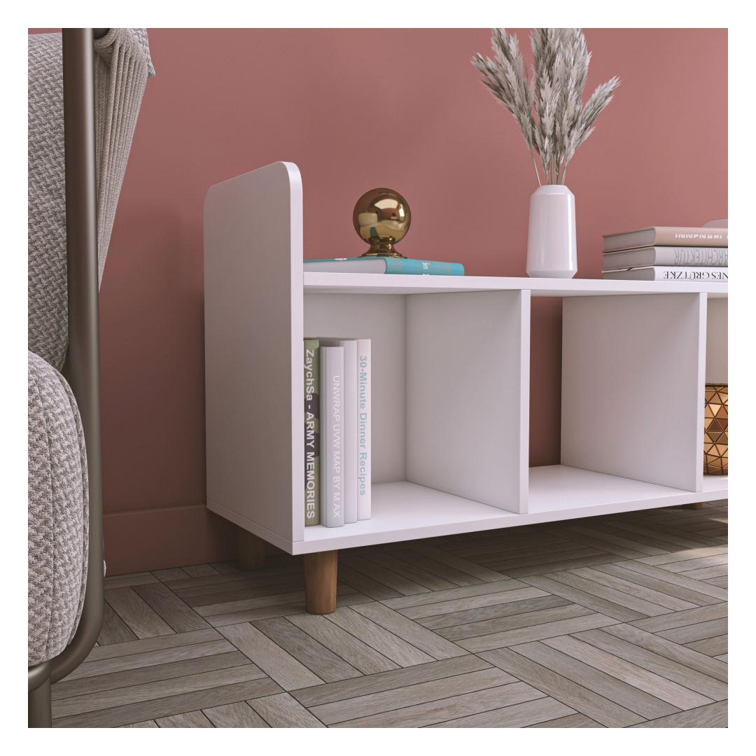 The clean lines and white color of this TV stand will instantly elevate the look of your living room. Whether you have a modern or traditional decor, this stand will seamlessly blend in and enhance the overall aesthetic of your space.