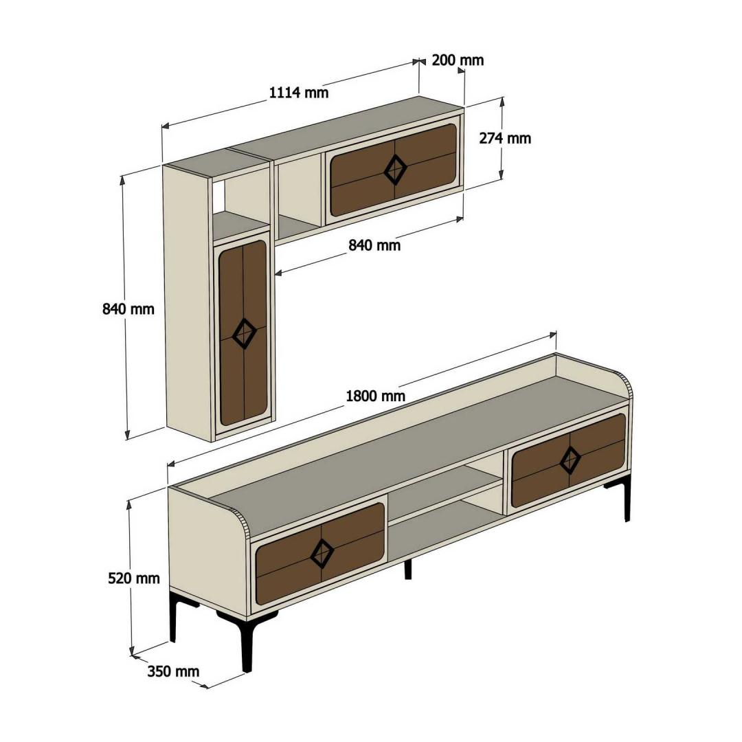TV Unit: Width: 180 cm Height: 52 cm Depth: 35 cm