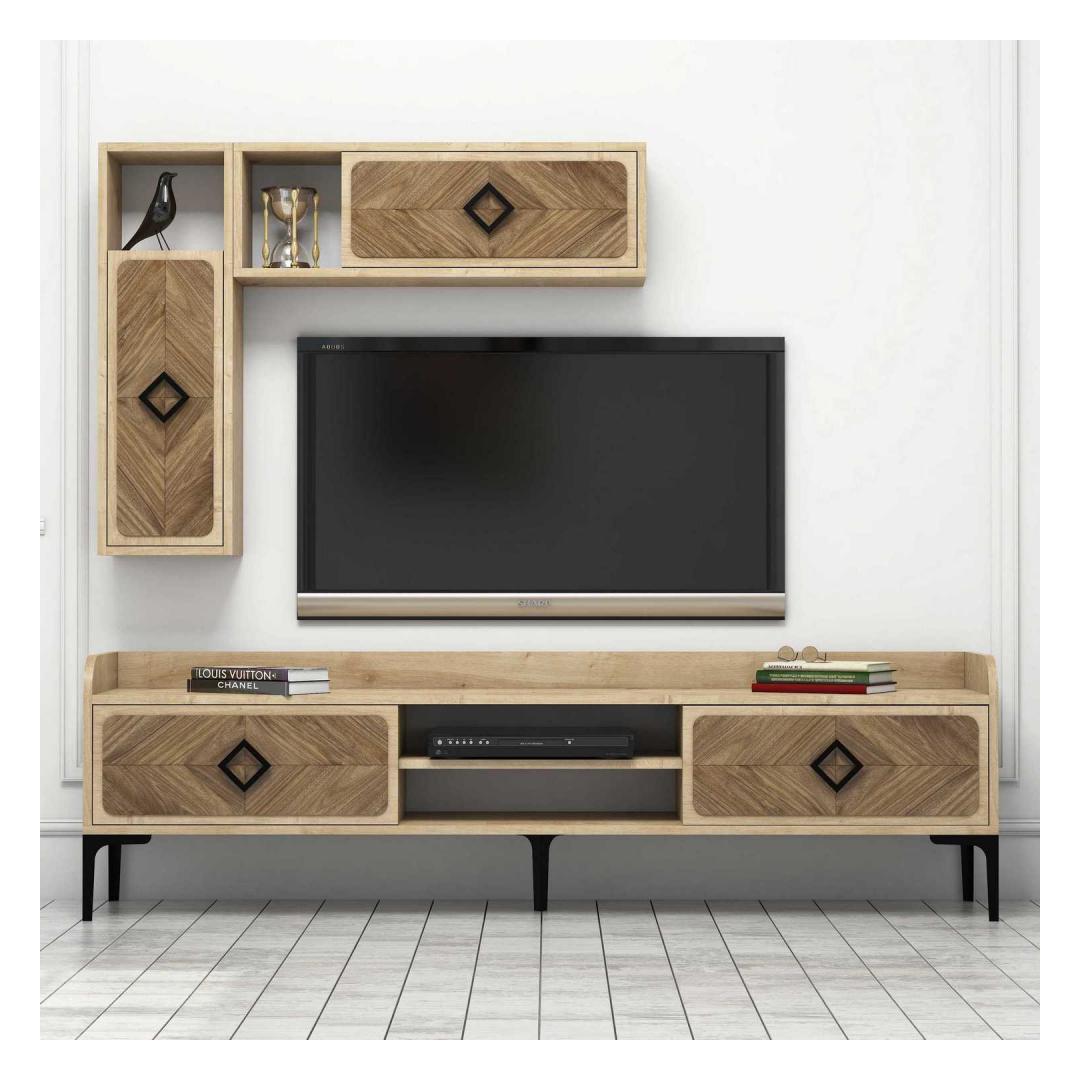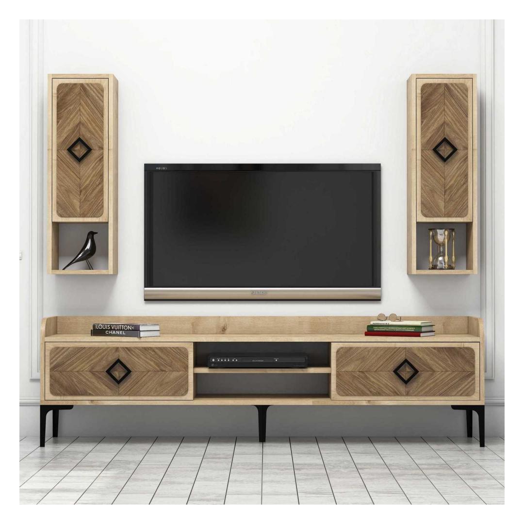 Transformeeri oma eluruum kaasaegse ja stiilse televiisorigaParandage oma elutoa atmosfääri meie suurepärase televiisoriga. See ülima täpsusega valmistatud televiisor on loodud lisama teie kodu sisustusele elegantsust ja elegantsust. Selle kaasaegne ja uudne kontseptsioon koos tööstusliku väändega muudab selle ideaalselt sobivaks igasse kaasaegsesse keskkonda.Loo stiilne fookuspunktSelle elegantse ja minimalistliku disainiga televiisorist saab kindlasti teie elutoa keskpunkt. Selle tammepuust värv lisab teie ruumile soojust ja rikkust, luues hubase ja kutsuva atmosfääri, mida teie ja teie lähedased saavad nautida. Rikkalik hoiuruumTänu arvukatele riiulitele pakub see televiisor piisavalt hoiuruumi kõigile teie meediatarvikutele. Alates dvd-dest ja mängukonsoolidest kuni raamatute ja dekoratiivsete esemeteni saate hõlpsasti korraldada ja näidata oma asju korrastatult ja organiseeritult. Monitoorne ja funktsionaalneSee teler pakub mitte ainult rohkelt hoiuruumi, vaid sellel on ka kaks seinariiulit, mida saab kinnitada seinale. See võimaldab teil esitleda oma lemmik dekoratiivseid esemeid või hoiustada täiendavaid esemeid, suurendades maksimaalselt teie elutoa funktsionaalsust. Konstrueeritud kestmaSee 100% melamiiniga kaetud puitlaastplaadist valmistatud teler on ehitatud nii, et see peab vastu. Selle 18 mm paksus tagab vastupidavuse ja tugevuse, pakkudes teile usaldusväärset mööblit, mis teenib teid aastaid. Tehnilised üksikasjad:Materjal: Materjal: Materjal: Materjal: Materjal: Materjal: Materjal: Materjal: materjal: 100% melamiiniga kaetud puitlaastplaatPaksus: 18 mmTelerikapi mõõtmed: Laius: 180 cm, kõrgus: 52 cm, sügavus: 35 cm.Seina riiuli mõõtmed: 4 cm, kõrgus: 84 cm, sügavus: 20 cm (2 tk).Värv: TammKontseptsioon: Kaasaegne - uudsus, tööstuslik Värv: Oak