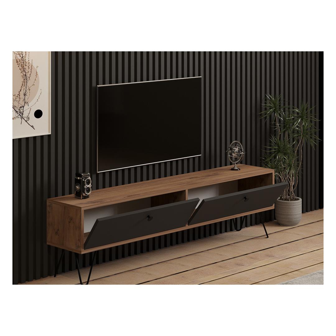 Looge luksuslik ja elegantne elutuba meie marmorist telerigaMuutke oma elutuba meie suurepärase marmorist teleriga keeruliseks ja stiilseks elutoaks. See ülima täpsusega ja detailidele tähelepanu pöörates valminud telerikapp on loodud selleks, et tõsta teie ruumi atmosfääri, pakkudes samal ajal praktilisi hoiustamislahendusi. Võrratu vastupidavus ja kvaliteetMeie telerikapp on valmistatud 100% melamiiniga kaetud puitlaastplaadist ja tugevast metallraamist, mis tagab pikaajalise vastupidavuse ja stabiilsuse. Ahjuvärvitud viimistlus lisab elegantsust ja tagab vastupidavuse kriimustuste ja kulumise vastu. Rikkalik hoiuruumArvukate riiulite ja täiendavate hoiukappide abil pakub meie telerikapp piisavalt ruumi meediaseadmete, dvd-de ja muude oluliste asjade korraldamiseks. Ütle hüvasti segadusega ja naudi korrastatud ja organiseeritud meelelahutusala. Versatiivne disainMeie telerite elegantse ja moodsa disainiga teler võimaldab sulanduda sujuvalt mis tahes sisekujunduse stiiliga. Atlandi männi ja musta värvi kombinatsioon lisab teie eluruumile rafineeritust ja elegantsi. Ehtsa paigaldusMeie tv-üksust saab hõlpsasti seinale kinnitada, mis pakub lisaturvalisust ja stabiilsust. Lihtne paigaldusprotsess tagab, et saate oma uut mööblieset kiiresti nautida. Tehnilised üksikasjad:Toote tüüp: Mööblile paigaldatav mööblile, mis on valmistatud ja paigaldatud: Telerikomplekt: TelerikomplektMaterjal: Materjal: Materjal: Materjal: Materjal: Materjal: Materjal: Materjal: materjal: 100% melamiiniga kaetud puitlaastplaatRaam: 100% metallPaksus: 18 mmAhjuvärvitud viimistlusLaius: 160 cm, kõrgus: 45 cm, sügavus: 29,6 cm.Värv: Atlandi mänd ja mustArvukad riiulid hoiustamiseksVõimalik kinnitada seinale, et tagada stabiilsus ja turvalisus. Värv: Atlantic Pine Black