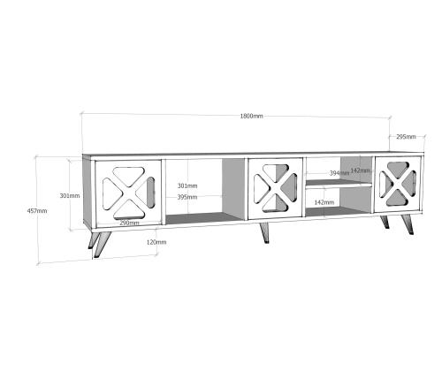 With a width of 180 cm, height of 45.7 cm, and depth of 29.5 cm, our TV stand is designed to fit perfectly in any room. Whether you have a small apartment or a spacious living area, this stand will effortlessly blend in. Additionally, it can be fixed to the wall, saving you valuable floor space.