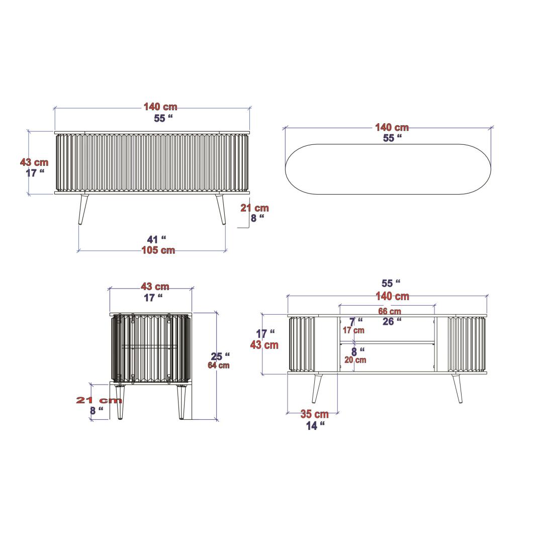 Width: 140 cm Depth: 43 cm Height: 64 cm