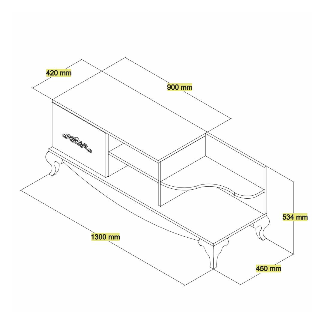 Width: 130 cm Height: 50,6 cm Depth: 45 cm