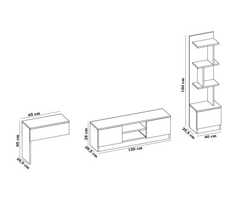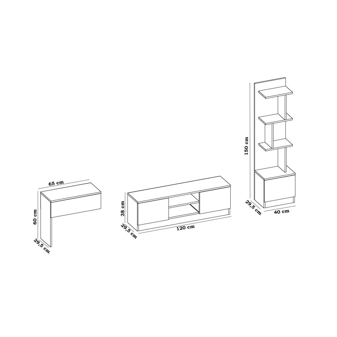 - TV Stand Size: Width: 120 cm, Height: 38 cm, Depth: 29.5 cm