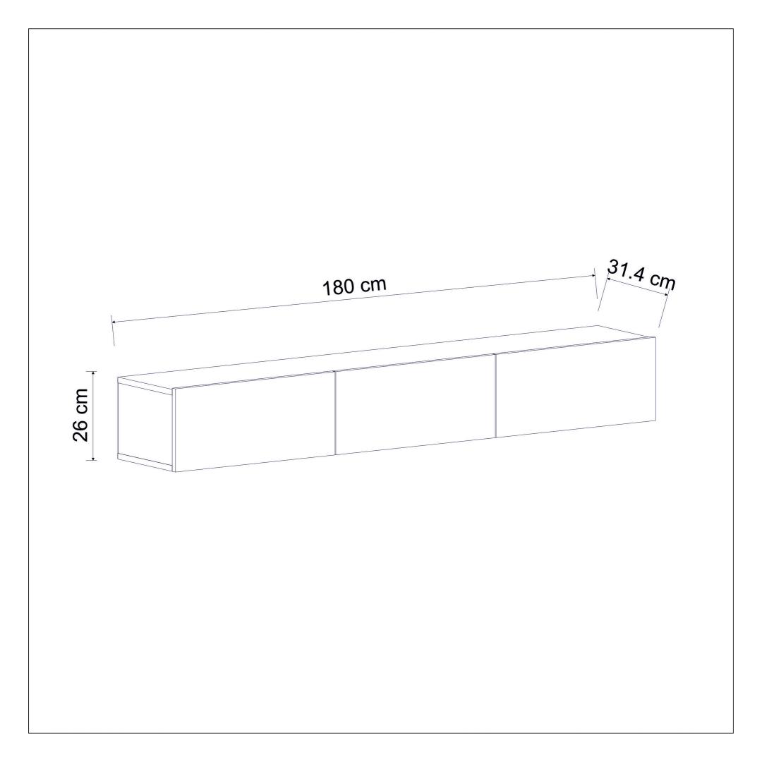 Width: 180 cm Height: 26 cm Depth: 31,4 cm