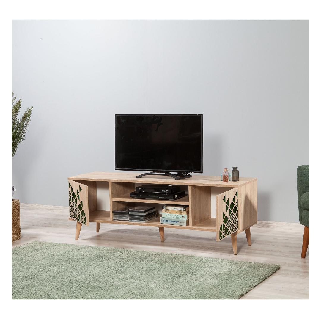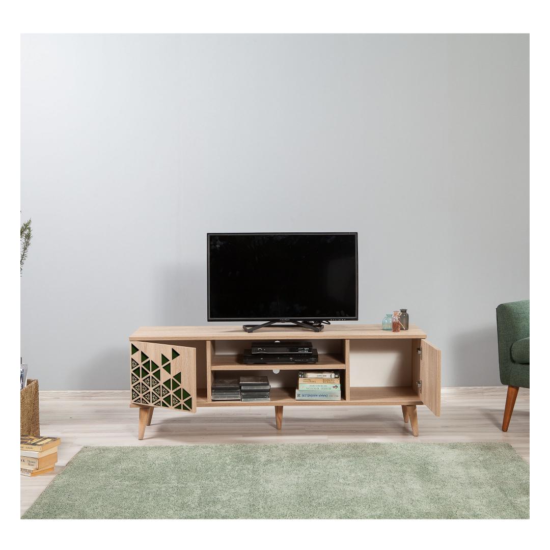 Transformeeri oma elutuba uimastava televiisoripuldigaUuendage oma elutuba meie suurepärase teleripuldiga, mis ühendab endas funktsionaalsuse ja stiili. See kirglikult valmistatud teleripult on loodud suurendama teie vaatamiskogemust, lisades samal ajal teie kodu sisustusele elegantsi. Võrratu kvaliteet ja vastupidavusValmistatud 100% melamiiniga kaetud puitlaastplaadist, on meie teleritugi ehitatud kestma. 18 mm paksus tagab tugevuse ja stabiilsuse, pakkudes usaldusväärset alust teie televiisorile. Sarvepuust jalad lisavad rafineeritust, samal ajal kui metallist ja köiega käepidemed pakuvad ainulaadset ja kaasaegset väänet.Täiendada oma kodu sisekujundustTänu oma uv-kattele ja sonoma tammepuust värvile sulandub see teleri statiiv vaevata mis tahes sisekujundusega. Kubism/sürrealism, argiil ja geomeetriline kontseptsioon lisab teie eluruumile kaasaegse ja kunstilise nüansi, muutes selle ruumi keskpunktiks. Rikkalik hoiuruumMeie televiisoristendil on arvukad riiulid ja keskmise riiuliga helde mõõtmetega riiul, mis pakub palju hoiuruumi teie meediaseadmetele, dvd-dele ja muudele hädavajalikele asjadele. Võimalus kinnitada see seinale tagab stabiilsuse ja ohutuse, samas kui täiendavad hoiukapid tagavad segadusteta keskkonna. Tehnilised üksikasjad:Materjal: materjal: 100% melamiiniga kaetud puitlaastplaatPaksus: 18mmJalad: SarvepuuKäepidemed: Metall ja köisPinnakattega: UVMõõdud: Laius: 140cm, kõrgus: 50cm, sügavus: 40cm.Keskmise riiuli suurus: Laius: 59cm, kõrgus: 15cm.Jala kõrgus: 15cmVärv: Sonoma TammElustage oma elutuba meie televiisoripuldiga ja looge ruum, mis õhkab elegantsust ja funktsionaalsust. Ärge jätke kasutamata seda võimalust oma kodu kaunistamiseks. Tellige kohe ja kogege erinevust! Värv: Sonoma Oak