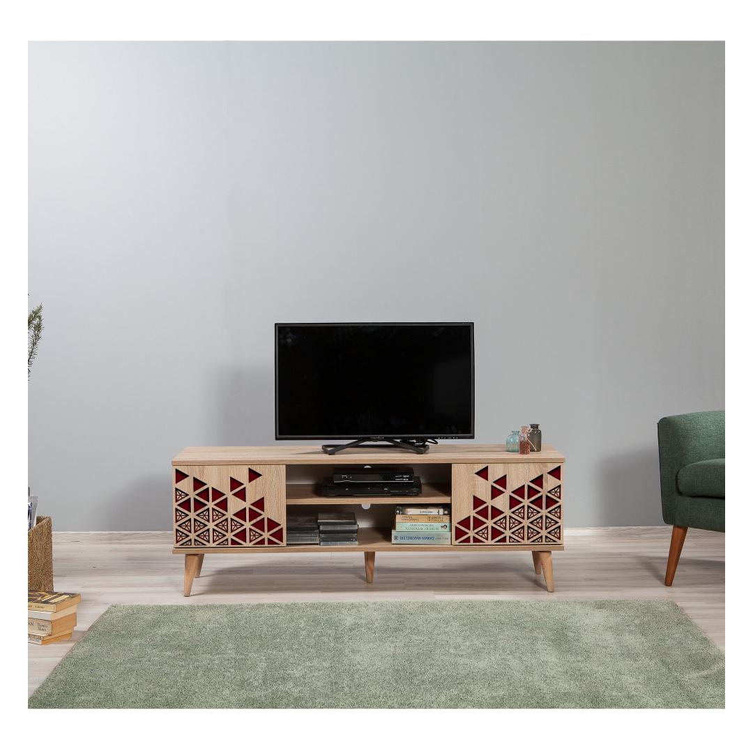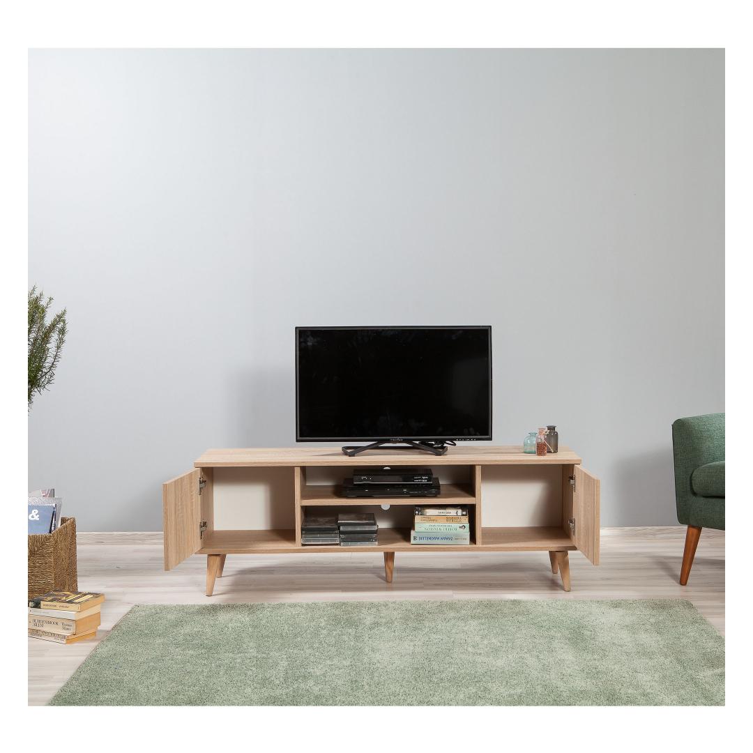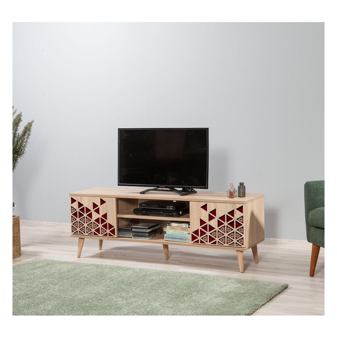 Välistage oma eluruumi meie stiilse teleripuldigaTäienda oma elutuba meie moodsa ja elegantse teleripuldiga. Valmistatud 100% melamiiniga kaetud puitlaastplaadist, ei ole see statiiv mitte ainult vastupidav, vaid ka vastupidav kriimustustele ja plekkidele. 18 mm paksus tagab stabiilsuse ja pikaealisuse, mis teeb sellest täiusliku täienduse teie koju. Asjakohane disain ja tähelepanu detailideleSarvepuu jalgade, metallist ja köiega käepidemete abil paistab meie televiisoristend välja oma unikaalse ja pilkupüüdva disainiga. Uv-kate lisab läikiva viimistluse, mis suurendab üldist esteetilist atraktiivsust. Sonoma tamme värvus lisab igasse ruumi soojust ja elegantsi, luues hubase ja kutsuva atmosfääri. Rikkalik panipaik ja mitmekülgsusArvukate riiulitega ja keskmise riiuli suurusega 59 cm laius ja 15 cm kõrgus, pakub meie teleripult piisavalt hoiuruumi kõigile teie meediaseadmetele, dvd-dele ja muudele olulistele asjadele. Võimalus kinnitada see seina külge tagab stabiilsuse ja ohutuse, samas kui täiendav hoiuruum lisab teie eluruumile funktsionaalsust. Tehnilised üksikasjad:Materjal: Materjal: Materjal: Materjal: Materjal: Materjal: Materjal: Materjal: 100% melamiiniga kaetud puitlaastplaatPaksus: 18mmJalad: SarvepuuKäepidemed: Metall ja köisUV-kate: JahMõõdud: Laius: 140cm, kõrgus: 50cm, sügavus: 40cm.Keskmise riiuli suurus: Laius: 59cm, kõrgus: 15cm.Jala kõrgus: 15cmVärv: Sonoma TammKontseptsioon: Kubism/Surrealism, Argyle, Geomeetriline. Värv: Sonoma Oak