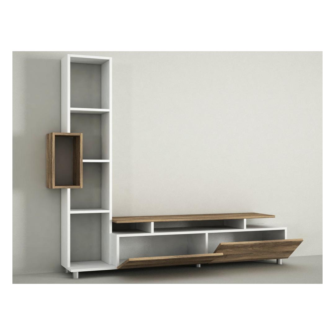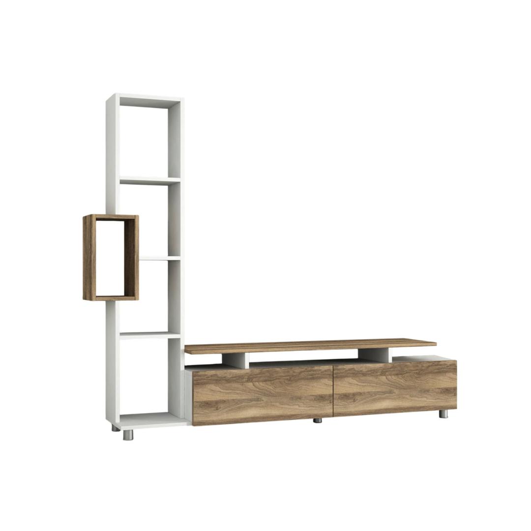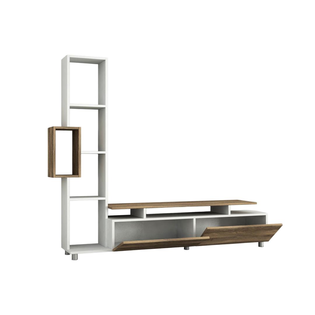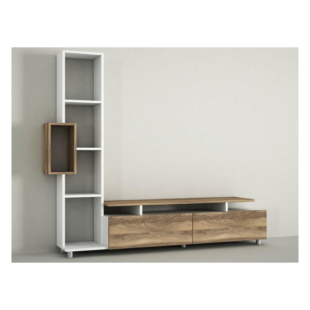 Featuring a sleek and modern design, our TV unit seamlessly blends with any interior style, adding a touch of elegance to your living space. The combination of white and walnut colors creates a stunning contrast that is sure to catch the eye of your guests.