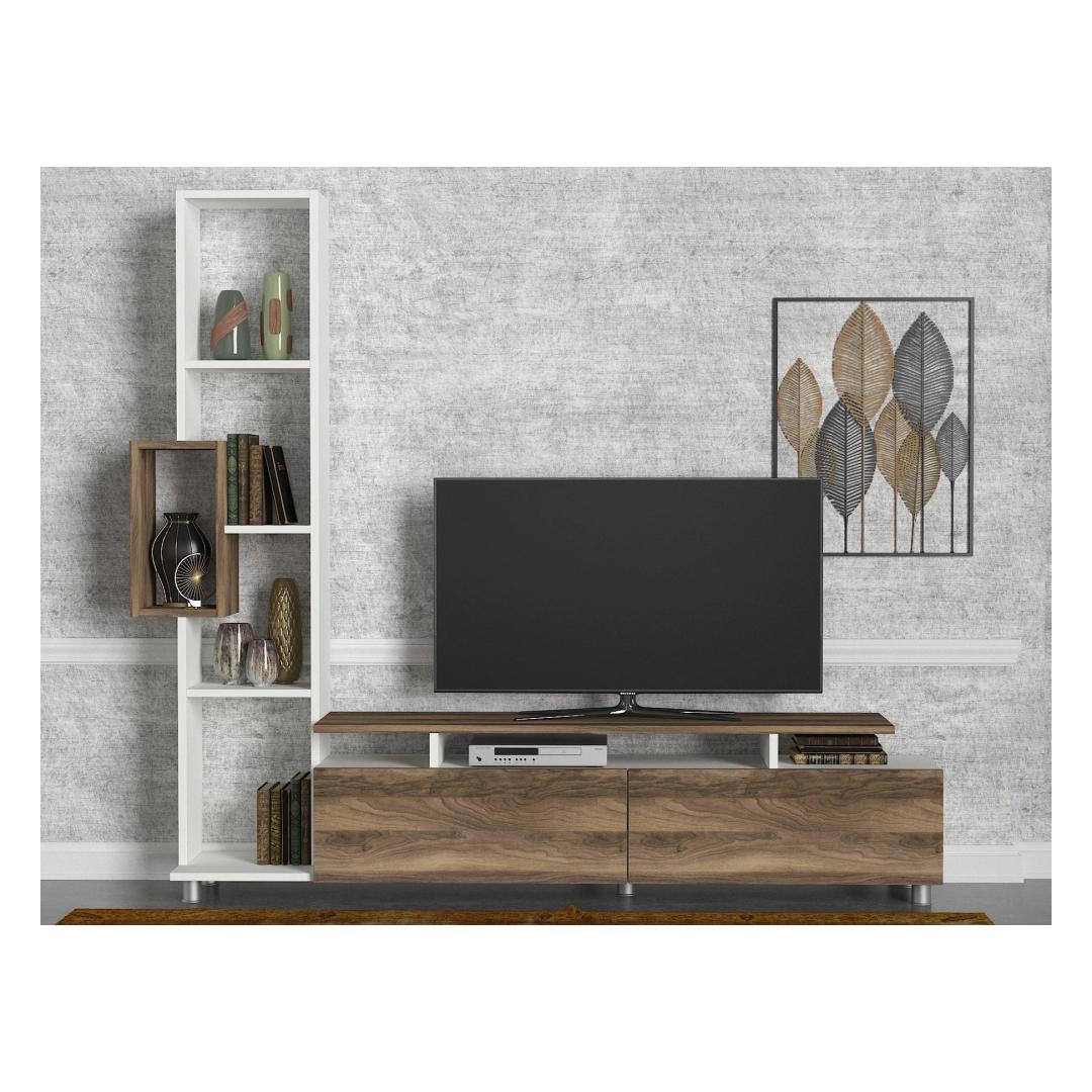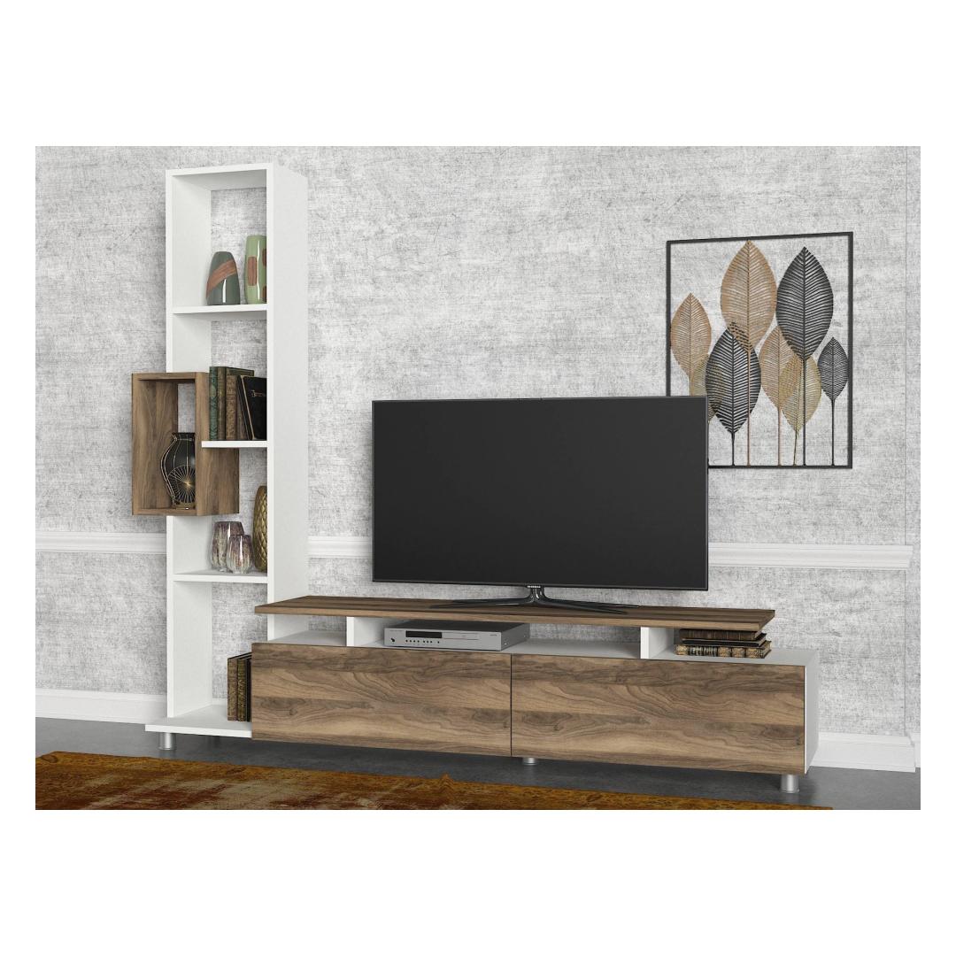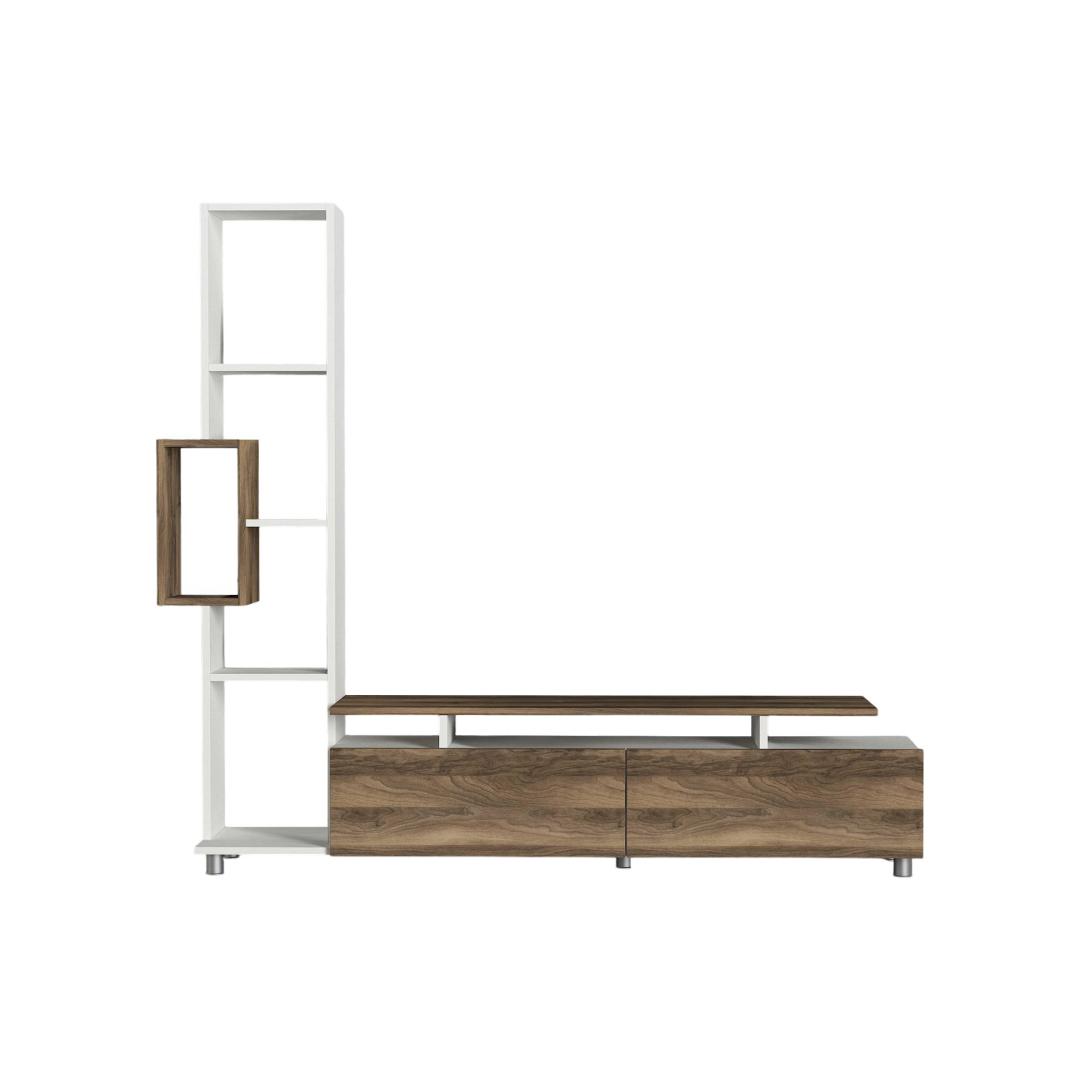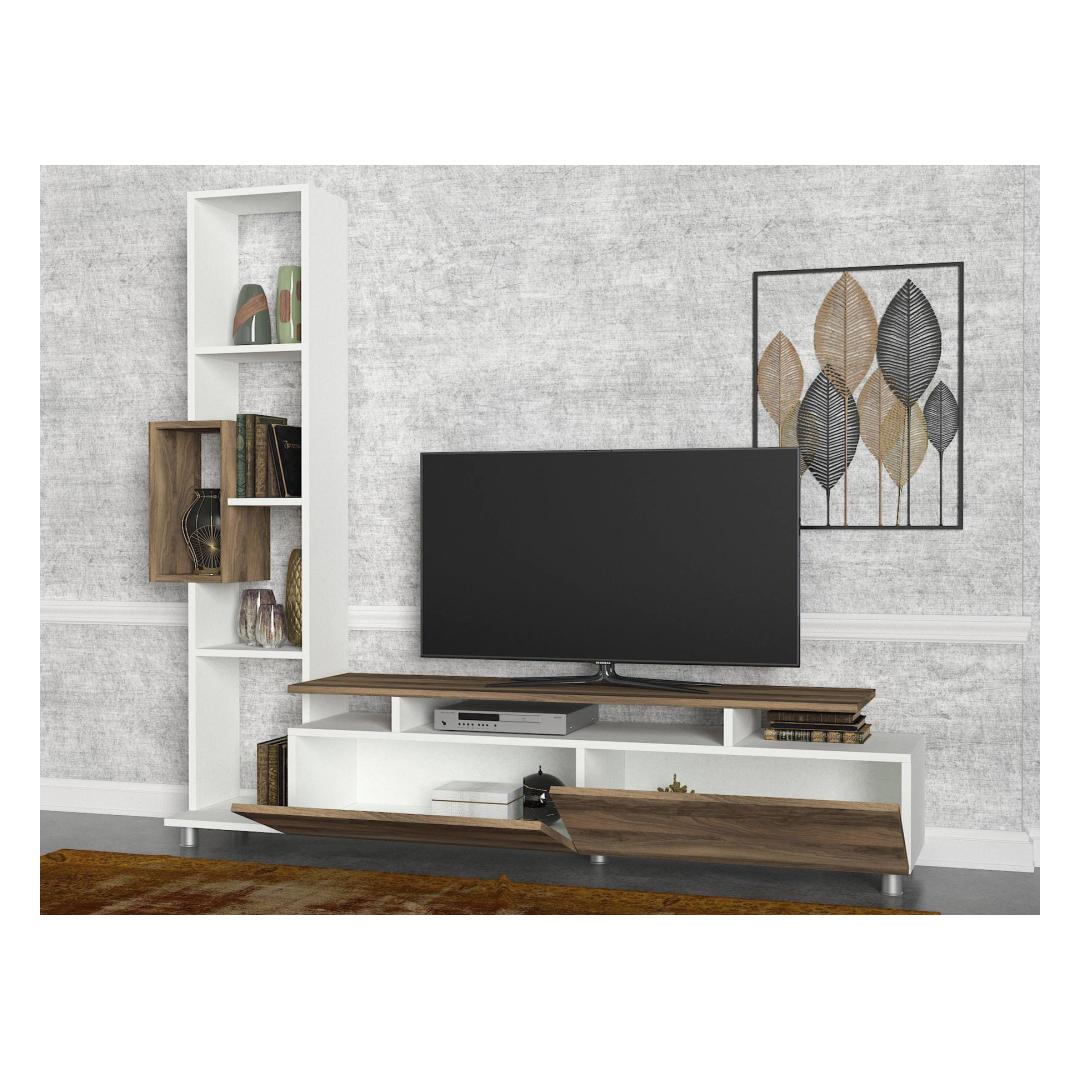 Featuring a sleek and modern design, our TV unit seamlessly blends with any interior style, adding a touch of elegance to your living space. The combination of white and walnut colors creates a stunning contrast that is sure to catch the eye of your guests.