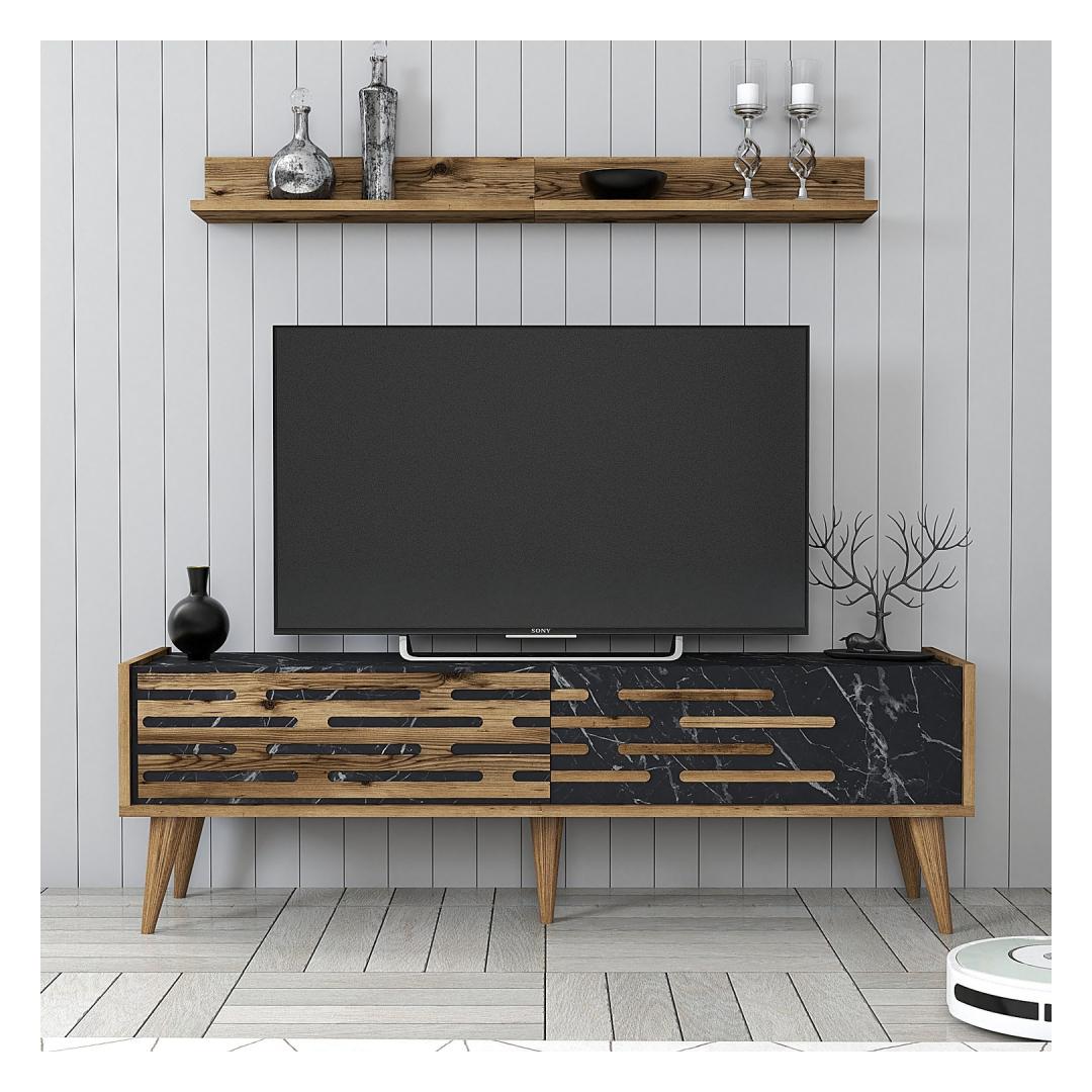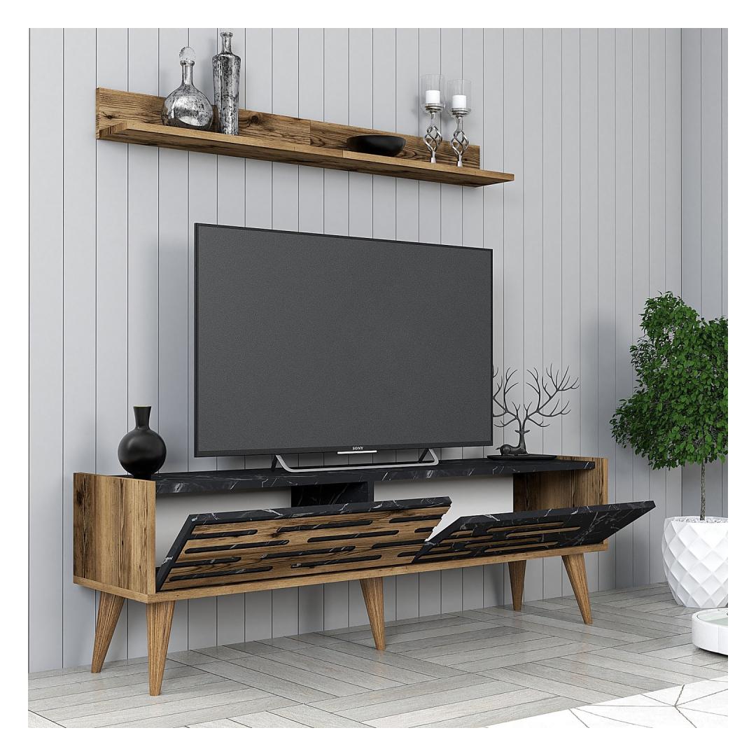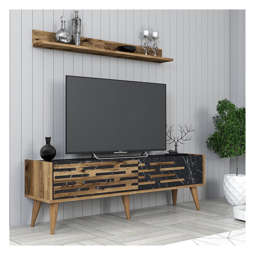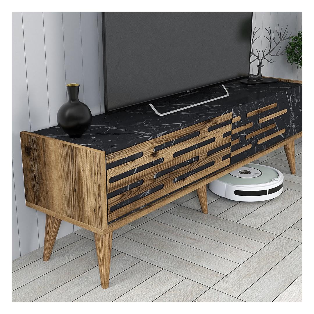 TV laud Valensiya 140 - Walnut, Black, Marble