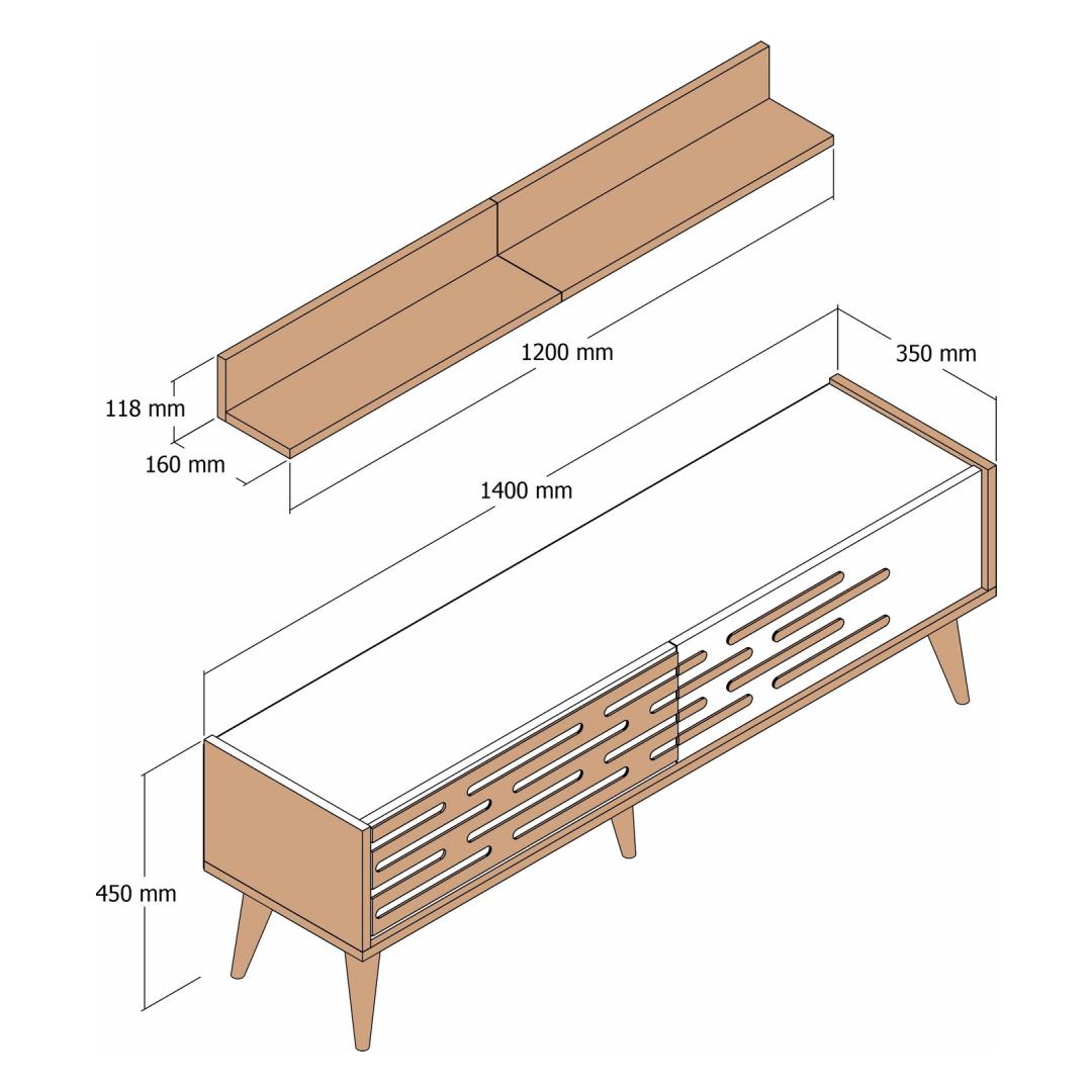 TV Stand Size: Width: 140 cm Height: 35 cm Depth: 45 cm
