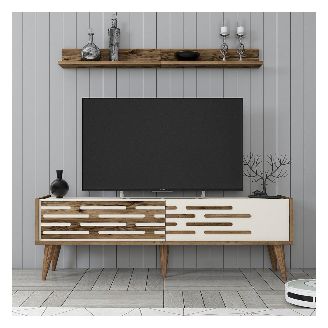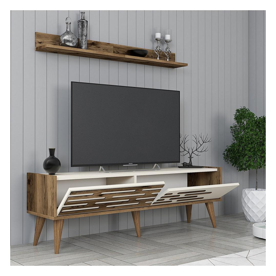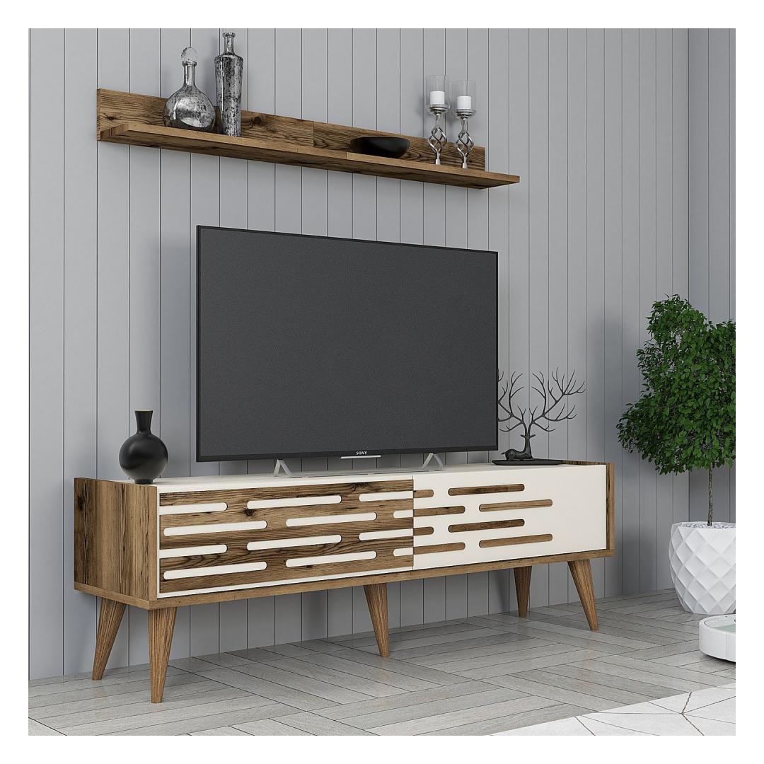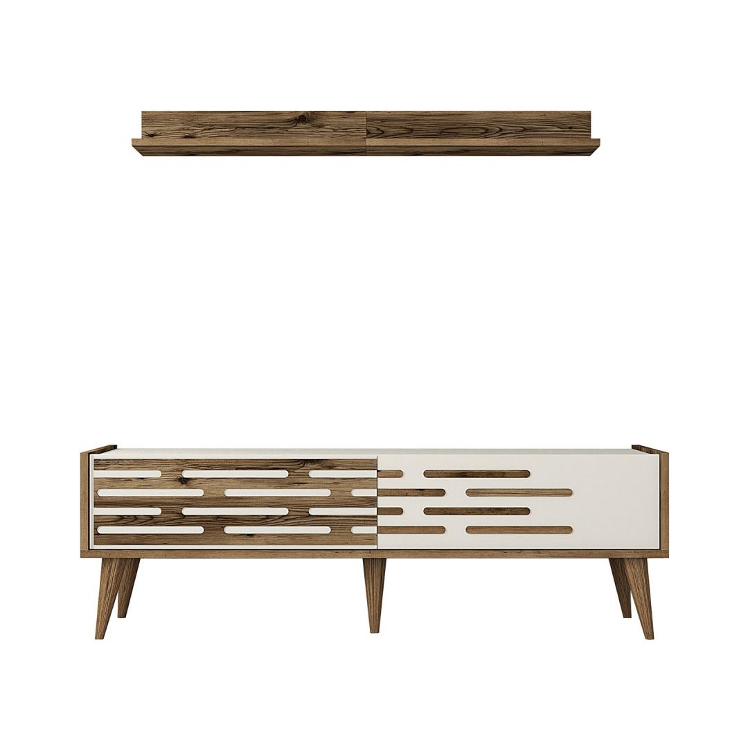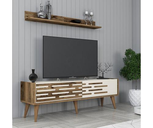 Transformeeri oma elutuba stiilse ja funktsionaalse televiisorigaKas olete väsinud oma igavast ja segast elutoast? uuendage oma ruumi meie uimastava teleriga, mis ühendab endas stiili ja funktsionaalsuse, et luua oma meelelahutusruumi täiuslik keskne osa. Tänu oma elegantsele disainile ja rohketele hoiuvõimalustele avaldab see telerikapp kindlasti muljet nii teile kui ka teie külalistele.Kõrgendage oma stiili elegantsi puudutusega100% melamiiniga kaetud puitlaastplaadist valmistatud televiisor ei ole mitte ainult vastupidav, vaid ka elegantse välimusega. Pähklipuu ja kreemi värvikombinatsioon lisab igasse tuppa elegantsust, muutes selle koheselt stiilseks pelgupaigaks. Jääge organiseeritud rohke hoiuruumigaHüvasti segaste kaablite ja hajutatud puldiga. Meie televiisoril on arvukalt riiuleid ja täiendavaid panipaiku, mis võimaldavad teil korrastada kõik oma meelelahutusvahendid korralikult. Alates dvd-dest ja mängukonsoolidest kuni raamatute ja dekoratiivsete esemeteni on kõigel oma kindel koht. Kogemused võrratu vastupidavus ja stabiilsusMe mõistame, kui oluline on tugev ja usaldusväärne telerikapp. Seepärast on meie toode valmistatud 18 mm paksusega, mis tagab pikaajalise vastupidavuse. Plastikust käepide ja jalad tagavad täiendava stabiilsuse, mis annab teile meelerahu, teades, et teie telerikapp peab vastu. Tehnilised üksikasjad:Materjal: Materjal: Materjal: Materjal: Materjal: Materjal: Materjal: Materjal: materjal: 100% melamiiniga kaetud puitlaastplaatPaksus: 18 mmTeleri statiivi suurus: Laius: 140 cm, kõrgus: 35 cm, sügavus: 45 cm.Seina riiuli suurus: Laius: 120 cm, kõrgus: 16 cm, sügavus: 11. 8 cm.Plastikust käepide lihtsaks avamiseks ja sulgemiseksPlastist jalad parema stabiilsuse tagamiseksArvukad riiulid tõhusaks hoiustamiseksTäiendavad panipaigad mitmekülgseks kasutamiseksVärv: pähkelpuu ja kreemikas Värv: Walnut Cream