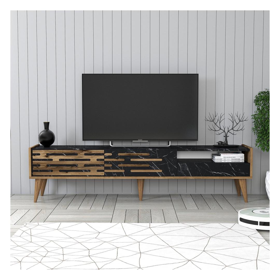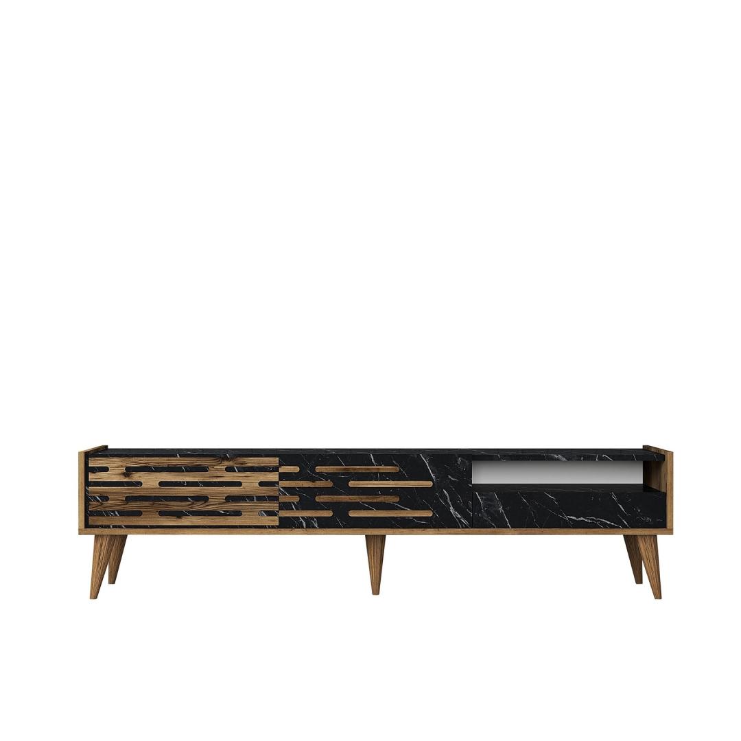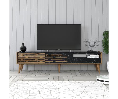 TV laud Valensiya - Walnut, Black, Marble