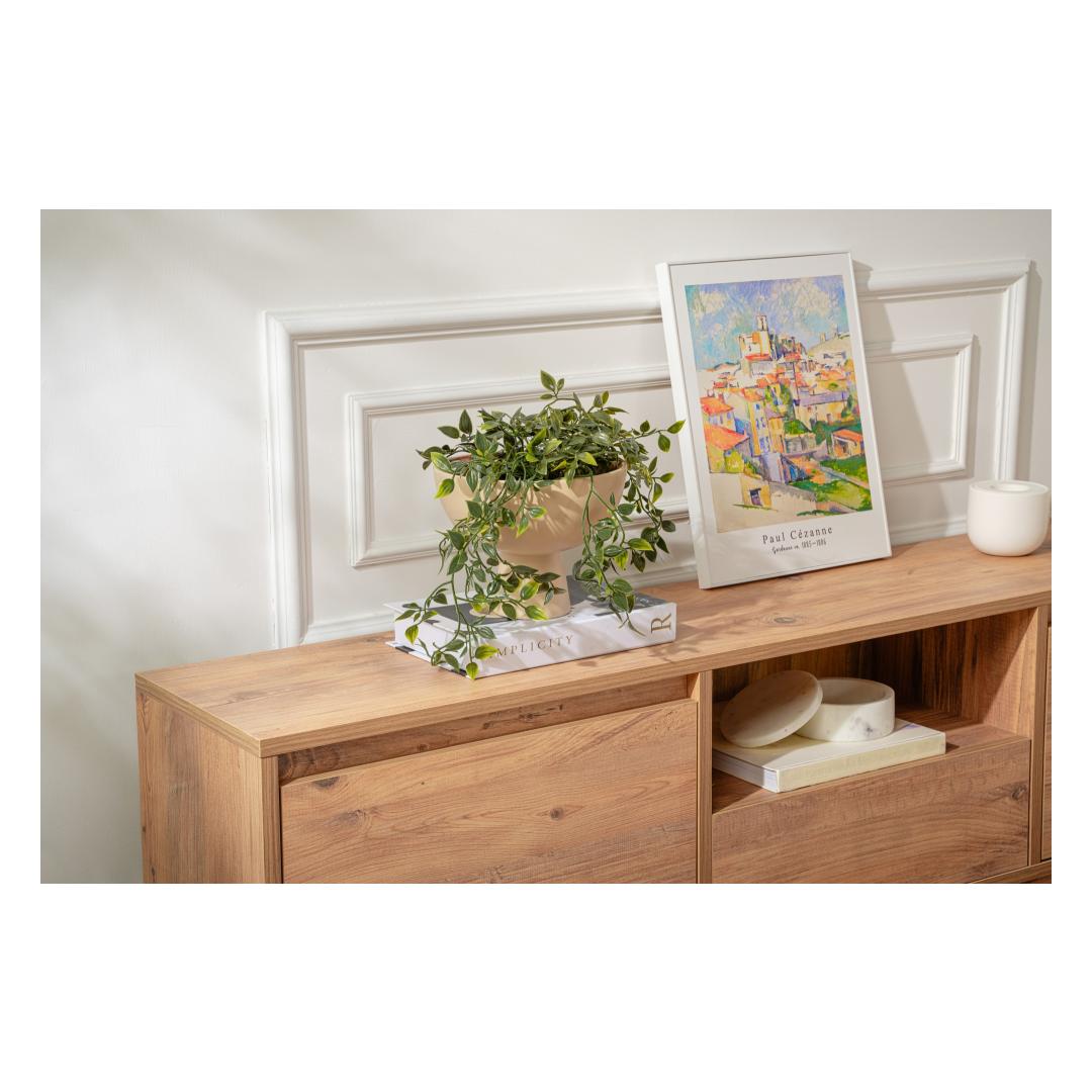 Kas oled väsinud oma elutoa igavast ja inspireerimatust välimusest? Ütle hüvasti igavate telerialuste ja tere meie hämmastavale Atlandi mändi telerialusele! See ese ei ole lihtsalt mööbel, vaid stiili ja rafineerituse väljendus.Tõsta oma eluruumiMuuda oma eluruum hubaseks ja kutsuvaks pelgupaigaks meie Atlandi mändi telerialusega. Rikas pruun värv lisab igasse ruumi soojust ja sügavust, samas kui kaasaegne disain toob sinu dekoreerimisse värskuse. Olgu sa siis oma lemmiksaateid vaatamas või korraldamas filmivõtteid sõpradega, see telerialus on sinu meelelahutusala keskpunkt.Kvaliteetne käsitööValmistatud 100% melamiinkattega puitlaastplaadist, on see telerialus mitte ainult stiilne, vaid ka vastupidav ja pikaealine. 18 mm paksus tagab stabiilsuse ja tugevuse, samas kui 160 cm laius pakub piisavalt ruumi sinu teleri ja meediaaksessuaaride jaoks. 42 cm kõrgus ja 30 cm sügavus teevad sellest ideaalse suuruse igasse elutuppa või meelelahutusruumi.Too Atlandi mändi telerialus koju juba tänaÄra lepi tavalisega, kui saad erakordset. Uuenda oma eluruumi meie Atlandi mändi telerialusega ja vaata, kuidas sinu tuba muutub stiilseks ja kutsuvaks pelgupaigaks. Tellige oma juba täna ja koge, millist erinevust kvaliteet ja disain võivad sinu kodus teha.Tehnilised andmed:Materjal: 100% melamiinkattega puitlaastplaatPaksus: 18 mmLaius: 160 cmKõrgus: 42 cmSügavus: 30 cmVärv: Atlandi mänd Värv: Atlantic Pine