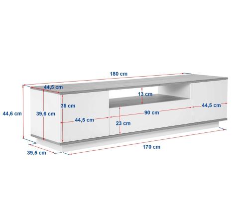 Width: 180 cm Height: 44,6 cm Depth: 44,5 cm