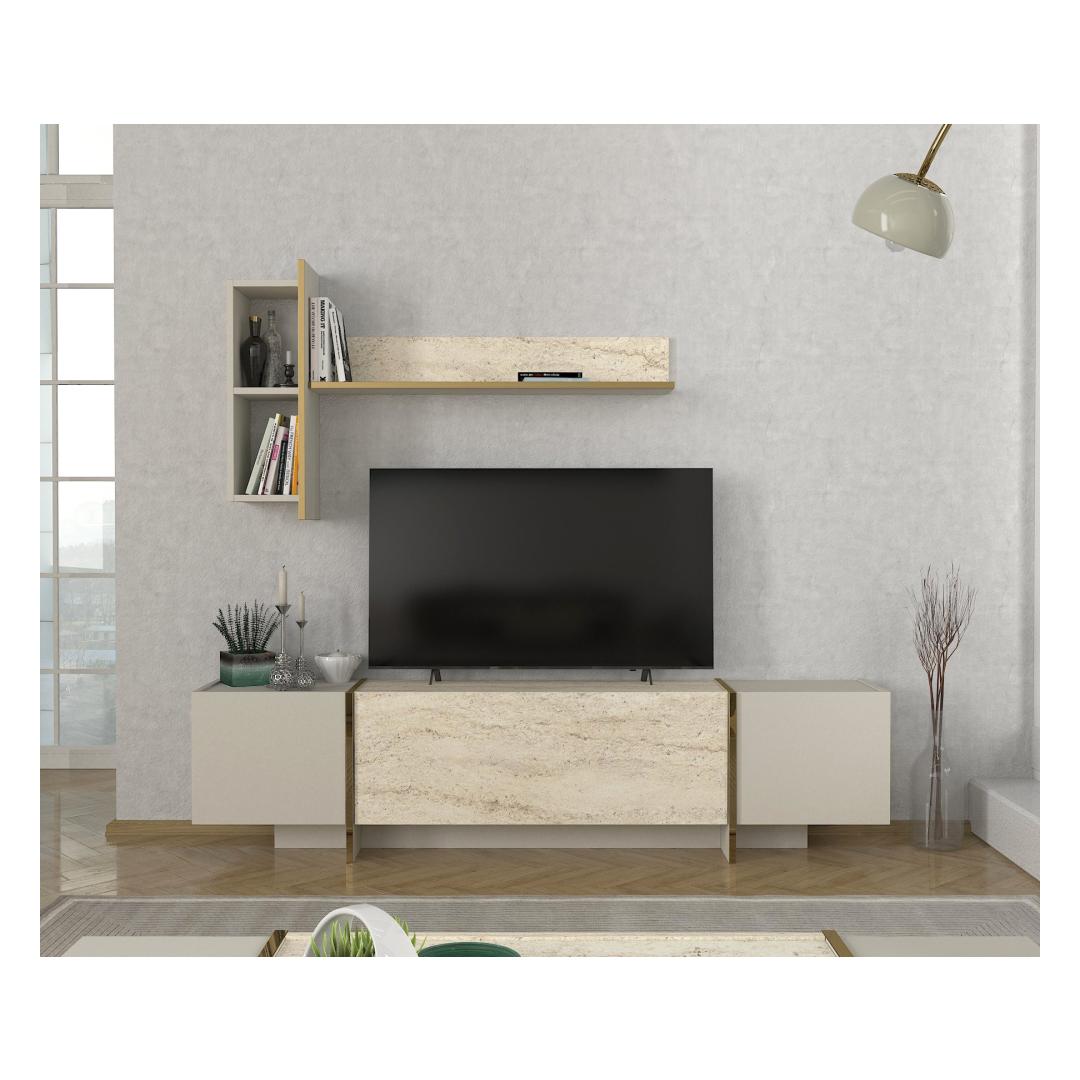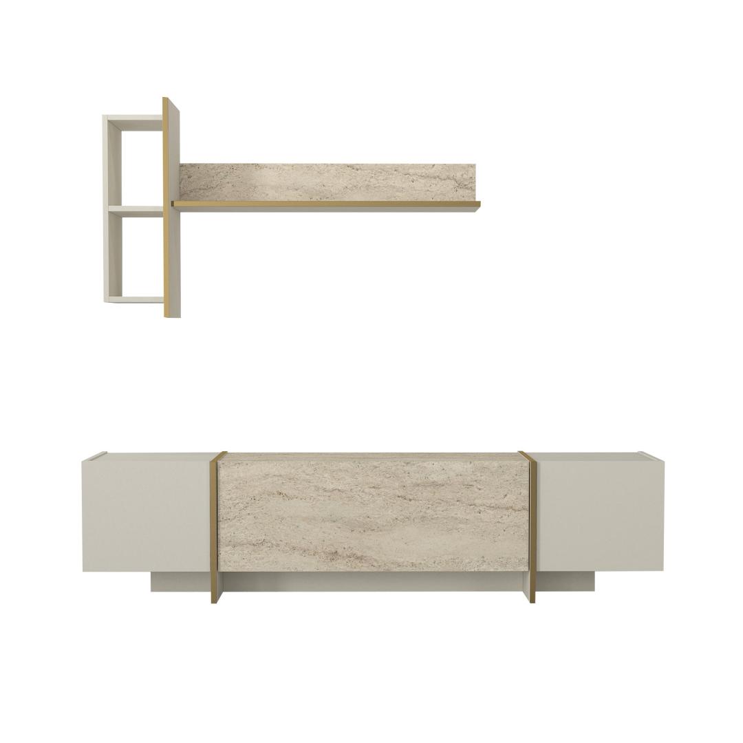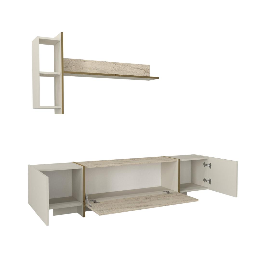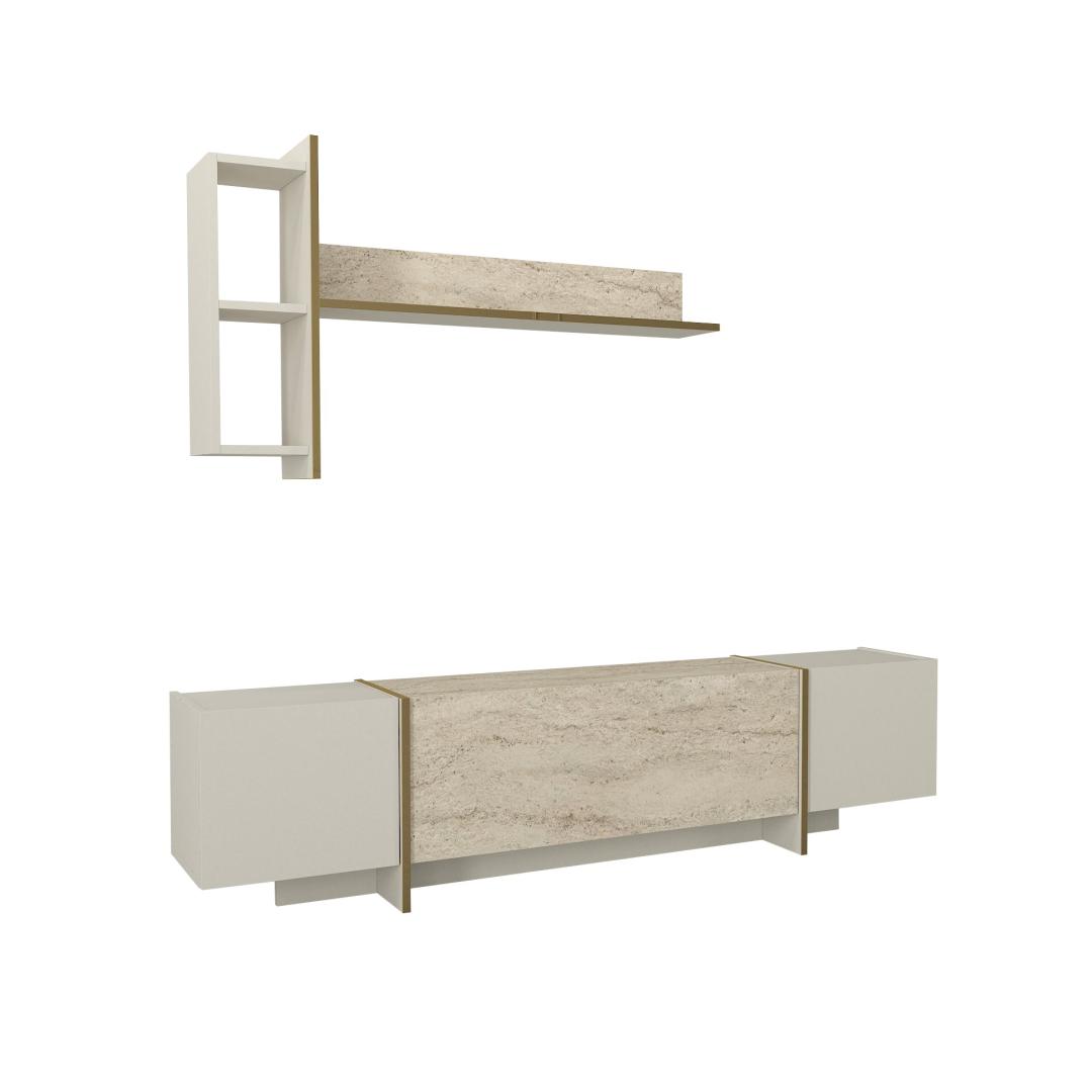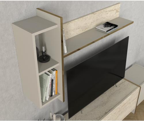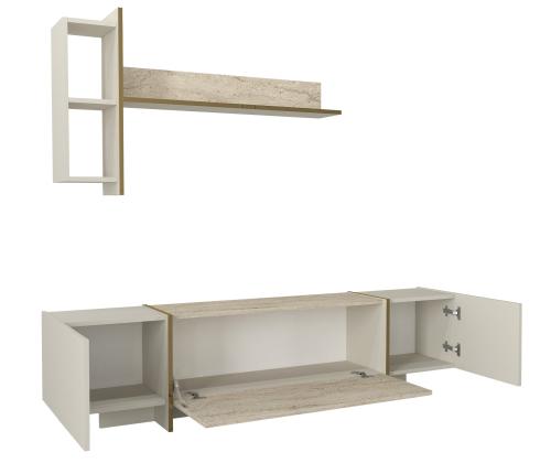 With a sleek design and a combination of Travertine and Sandstone colors, this TV unit will effortlessly blend in with any interior style. The 18mm thickness ensures sturdiness and longevity, making it a practical and stylish addition to your living room.