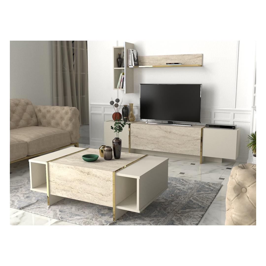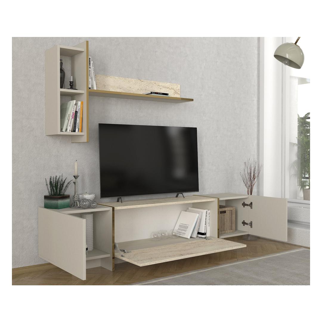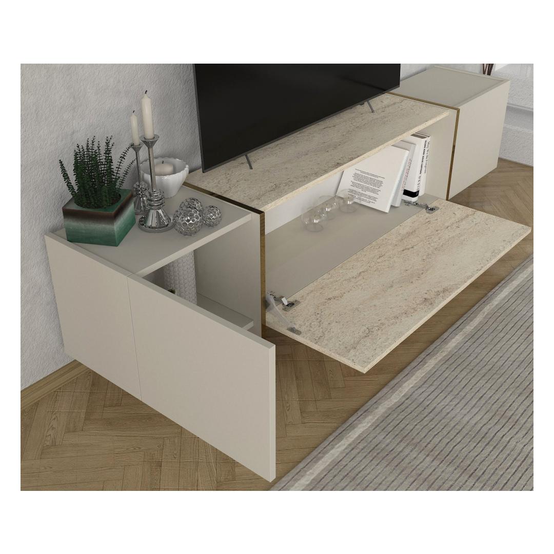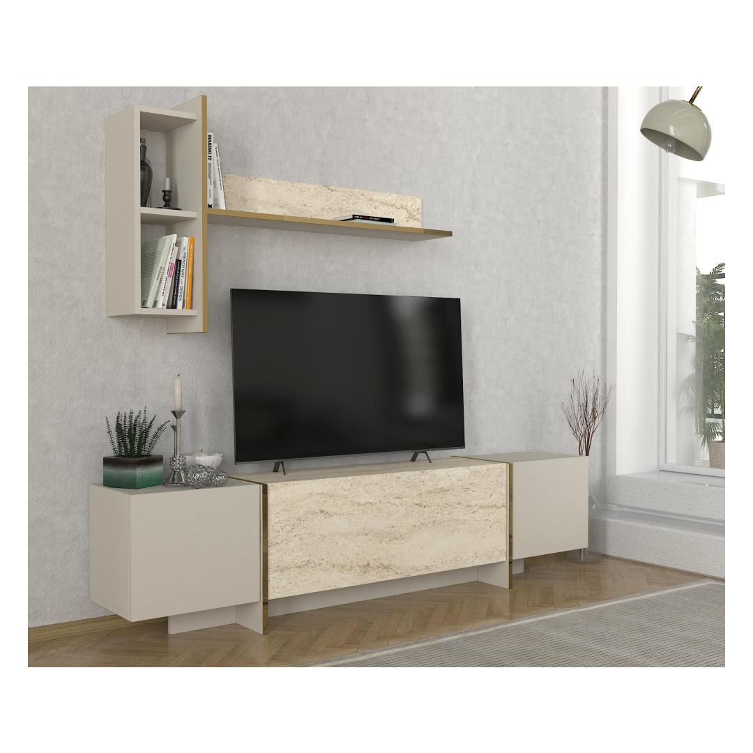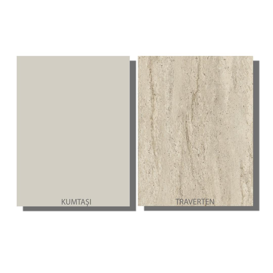 With a sleek design and a combination of Travertine and Sandstone colors, this TV unit will effortlessly blend in with any interior style. The 18mm thickness ensures sturdiness and longevity, making it a practical and stylish addition to your living room.