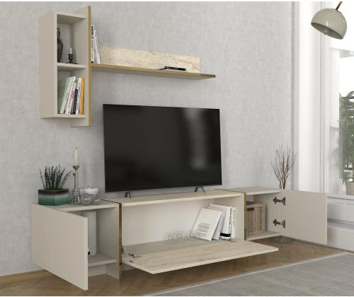 Transform your living room into a stylish and organized space with our stunning TV unit. Made from 100% melamine coated particle board, this TV unit is not only durable but also adds a touch of elegance to your home decor.
