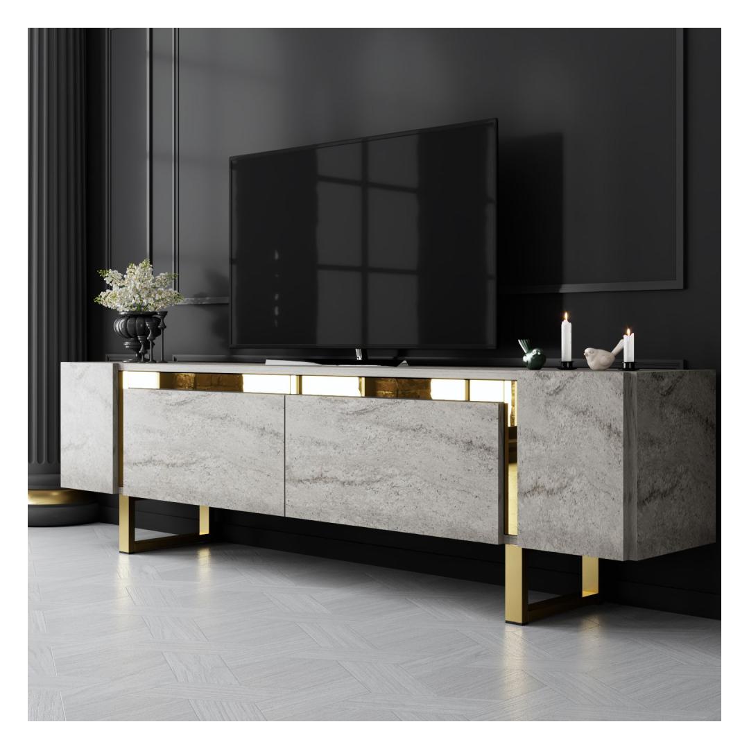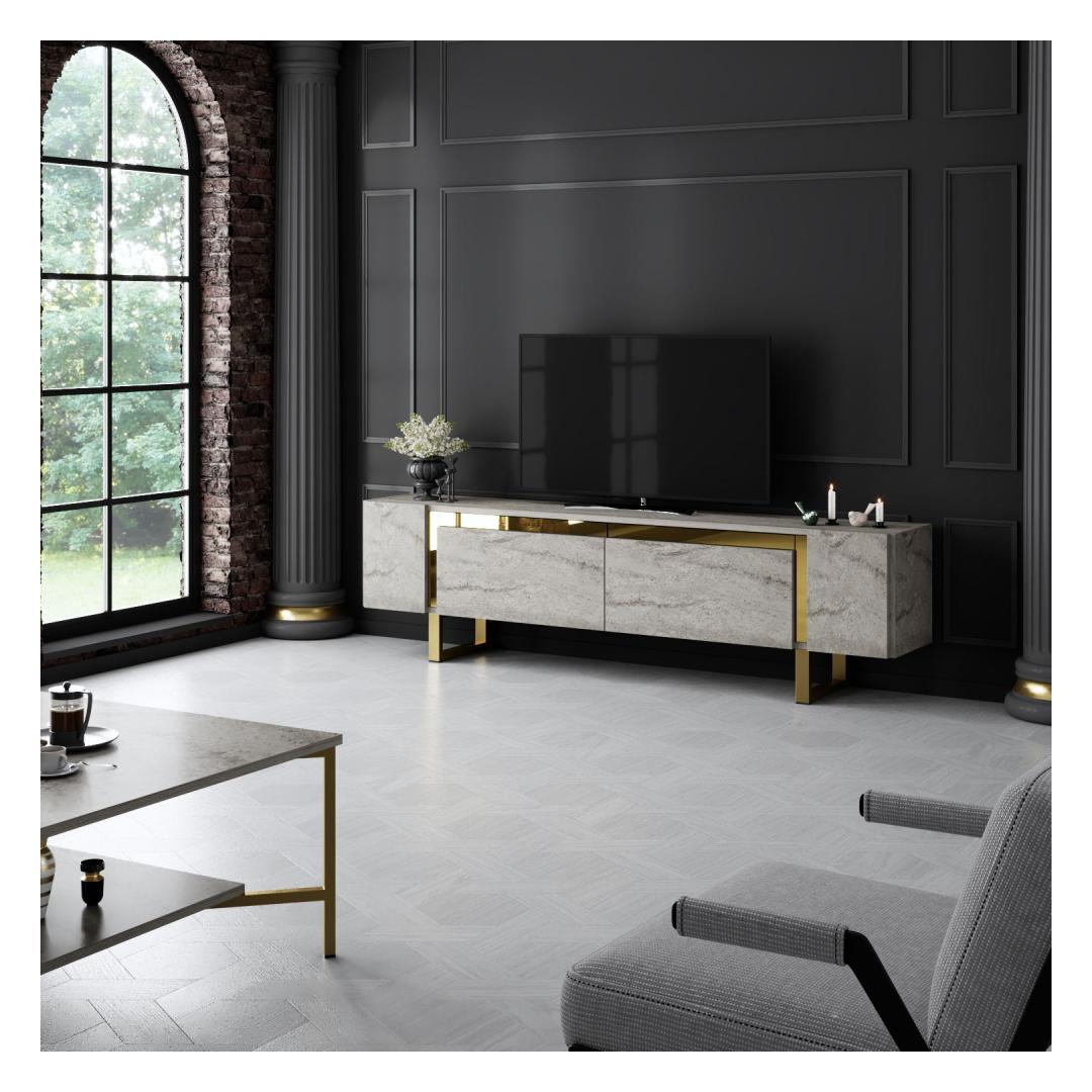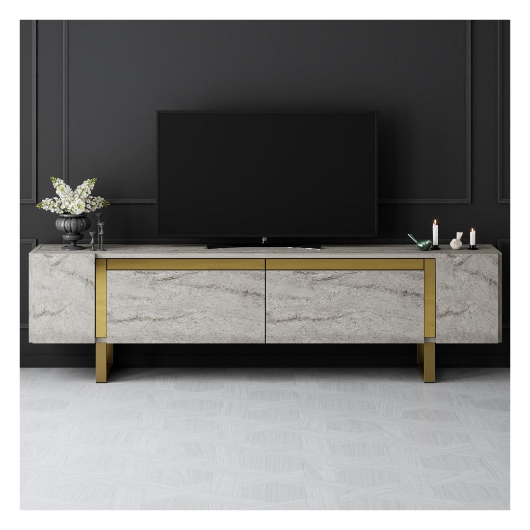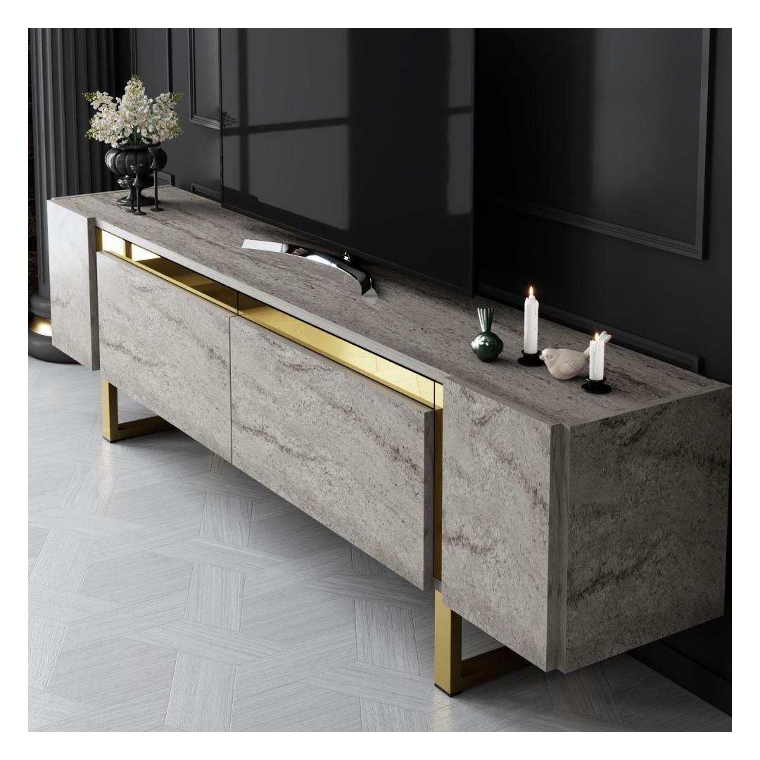 TV Stand Yildiz - Travertine, Gold