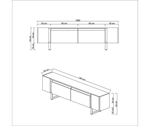 With a width of 180cm, height of 50cm, and depth of 30cm, this TV stand provides ample space for your television, media players, and other entertainment essentials. The metal legs with a profile size of 40 x 20mm and a height of 16cm provide stability and support for all your devices.