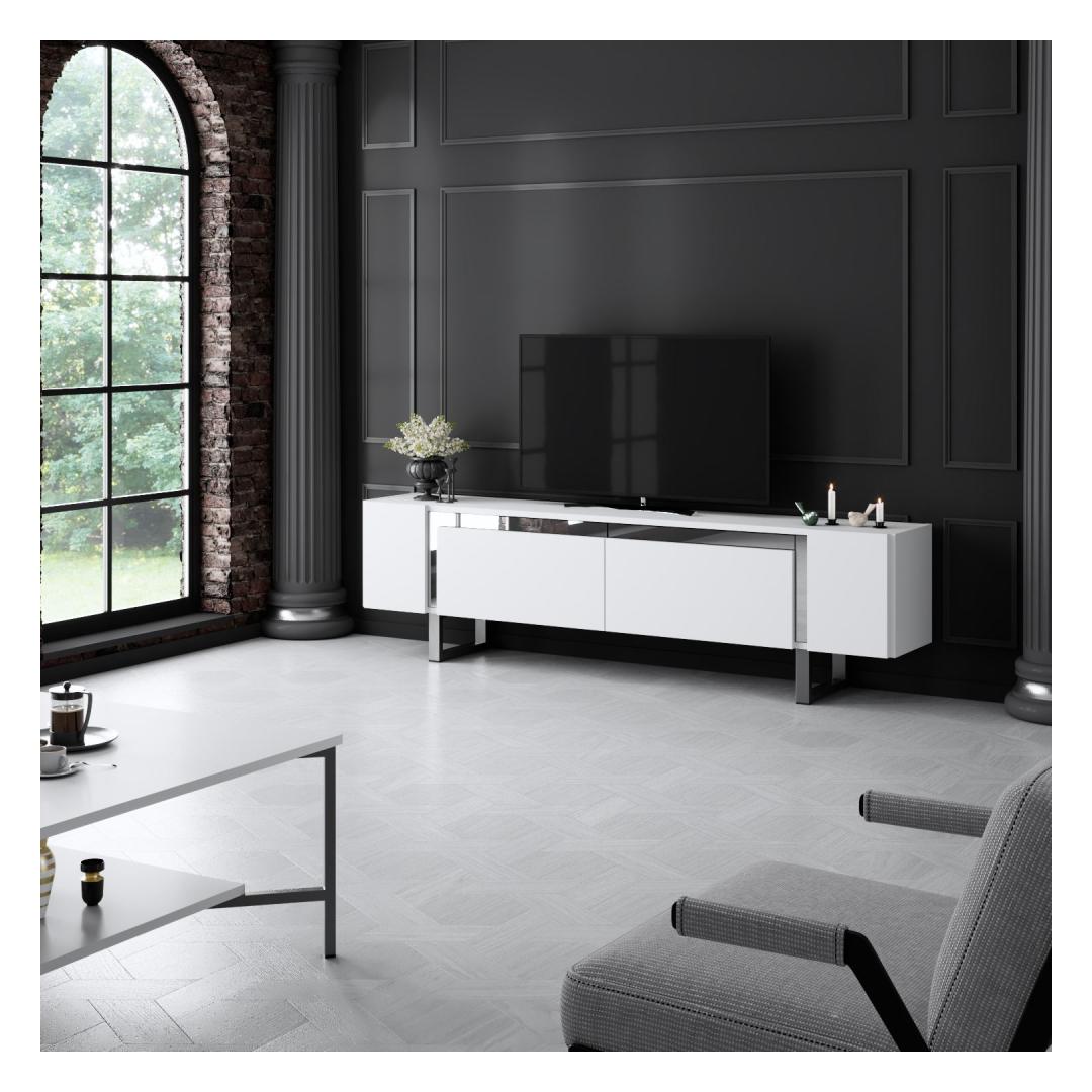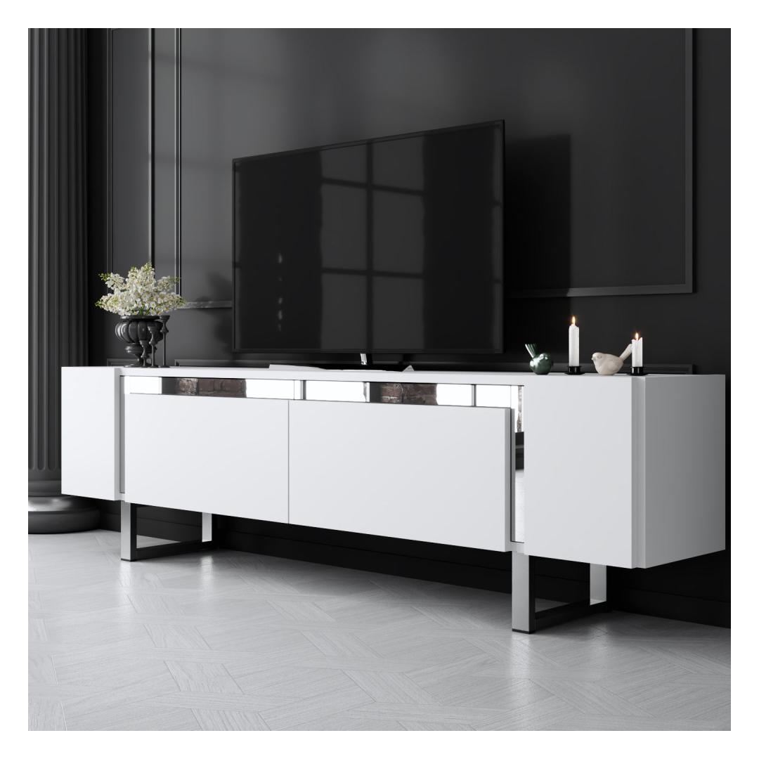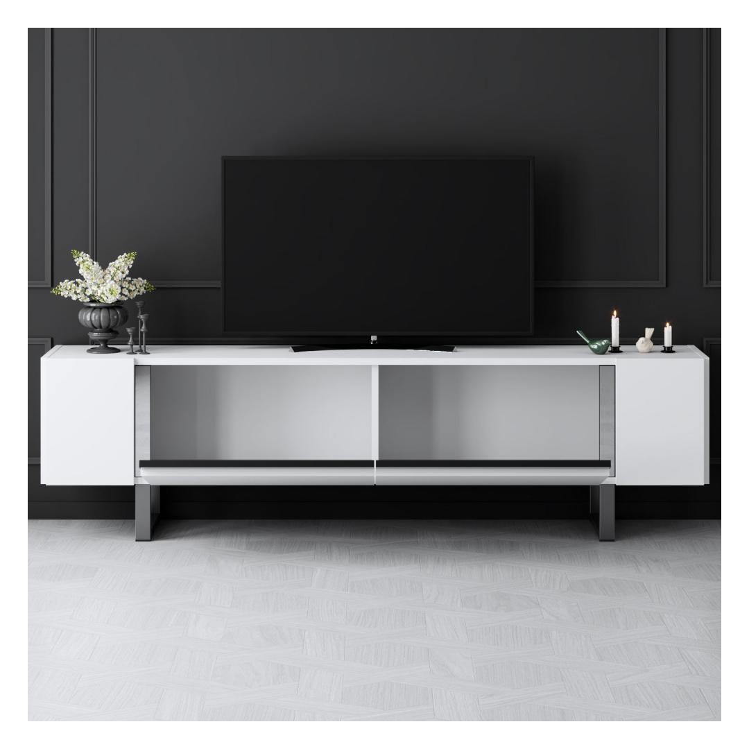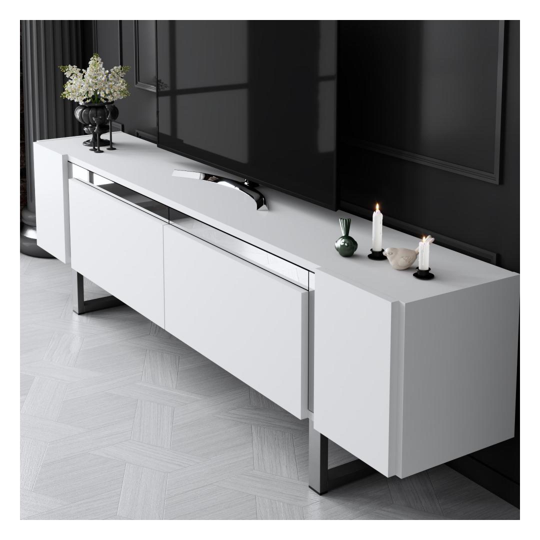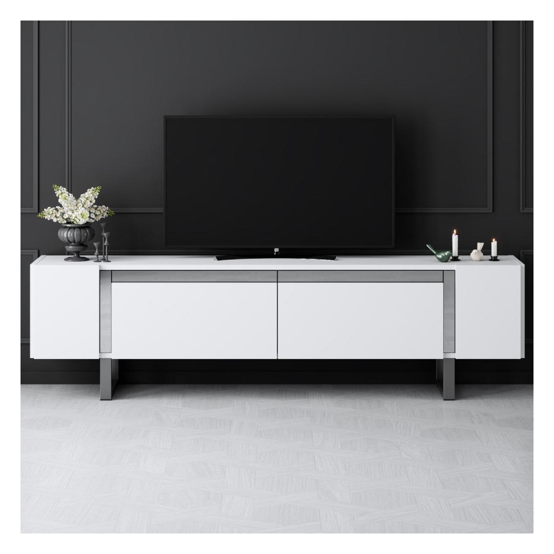 Transform your living room into a sleek and modern space with our stunning TV stand. This TV stand is not just a piece of furniture, it's a statement of style and sophistication. The combination of white and silver colors gives it a contemporary look that will elevate the aesthetic of any room.