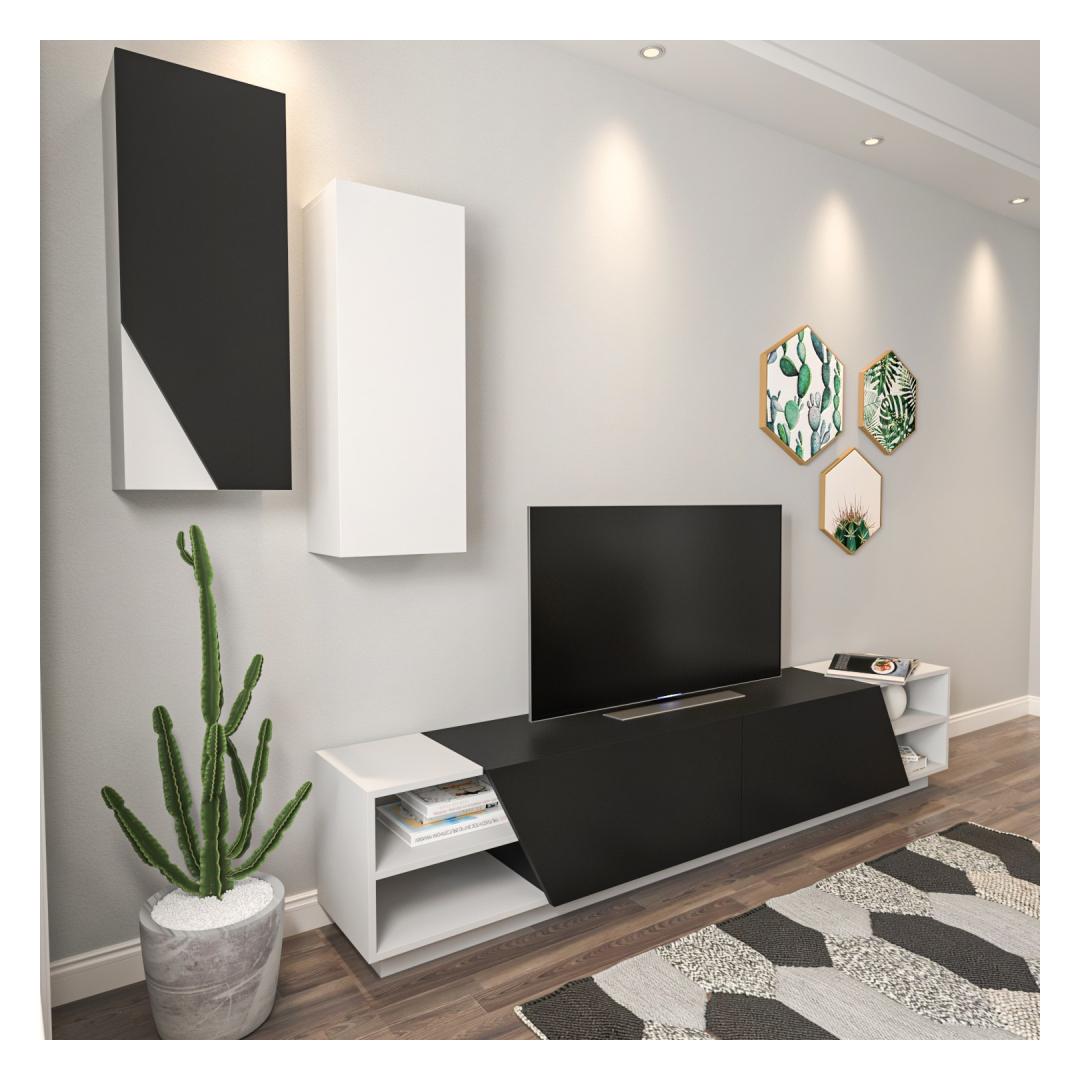 The contrasting black and white colors of this TV unit will add a touch of sophistication to your living room. The sleek and clean lines of the unit exude a Scandinavian charm, making it a perfect addition to any contemporary home decor.