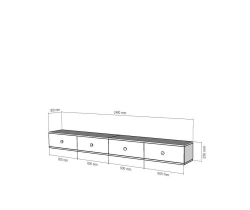 Total Size: Width: 240 cm Height: 25,6 cm Depth: 29,6 cm