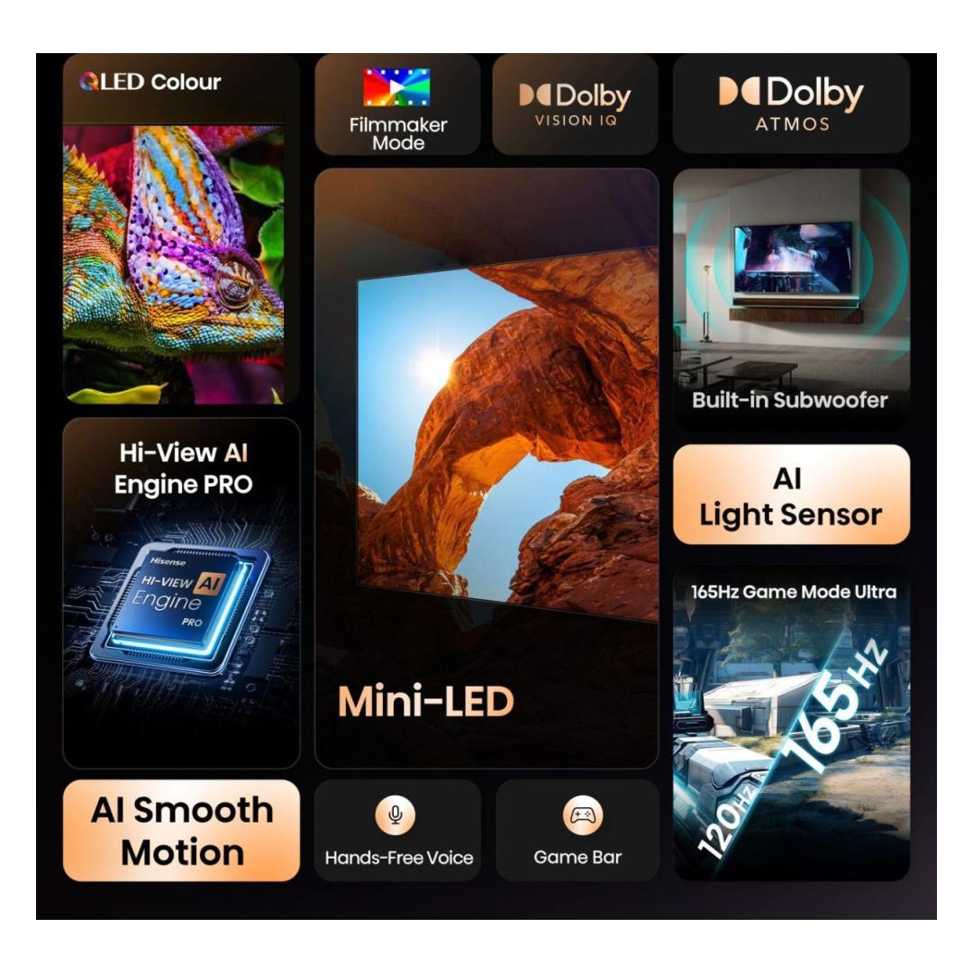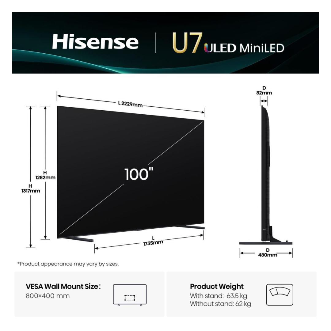 TV-sarja HISENSE 100 " 4K Ultra HD 3840 x 2160 pikseliä Flat 16:9 ULED 100U7Q 100U7Q