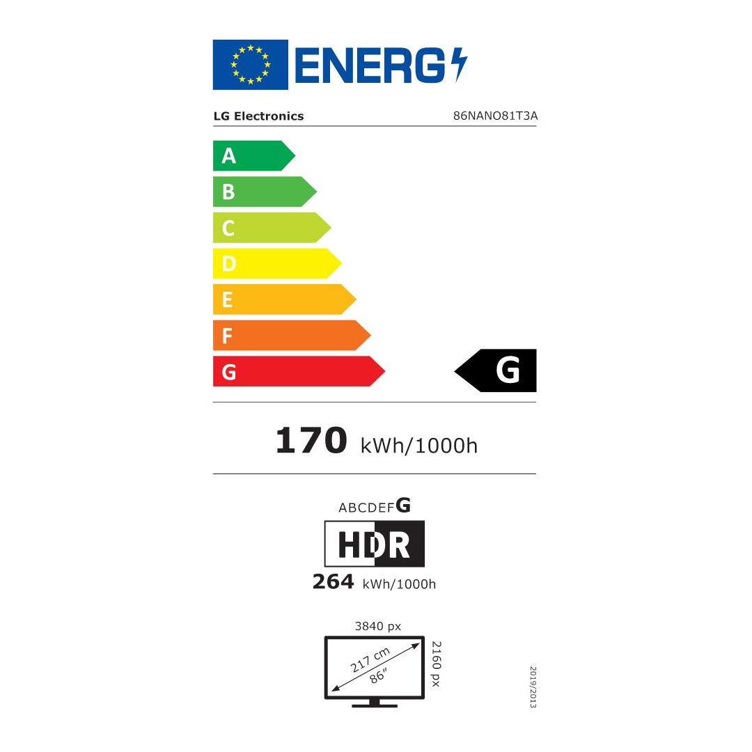 Energy efficiency class G LG NANO81 86', 4K Smart TV, 2024.