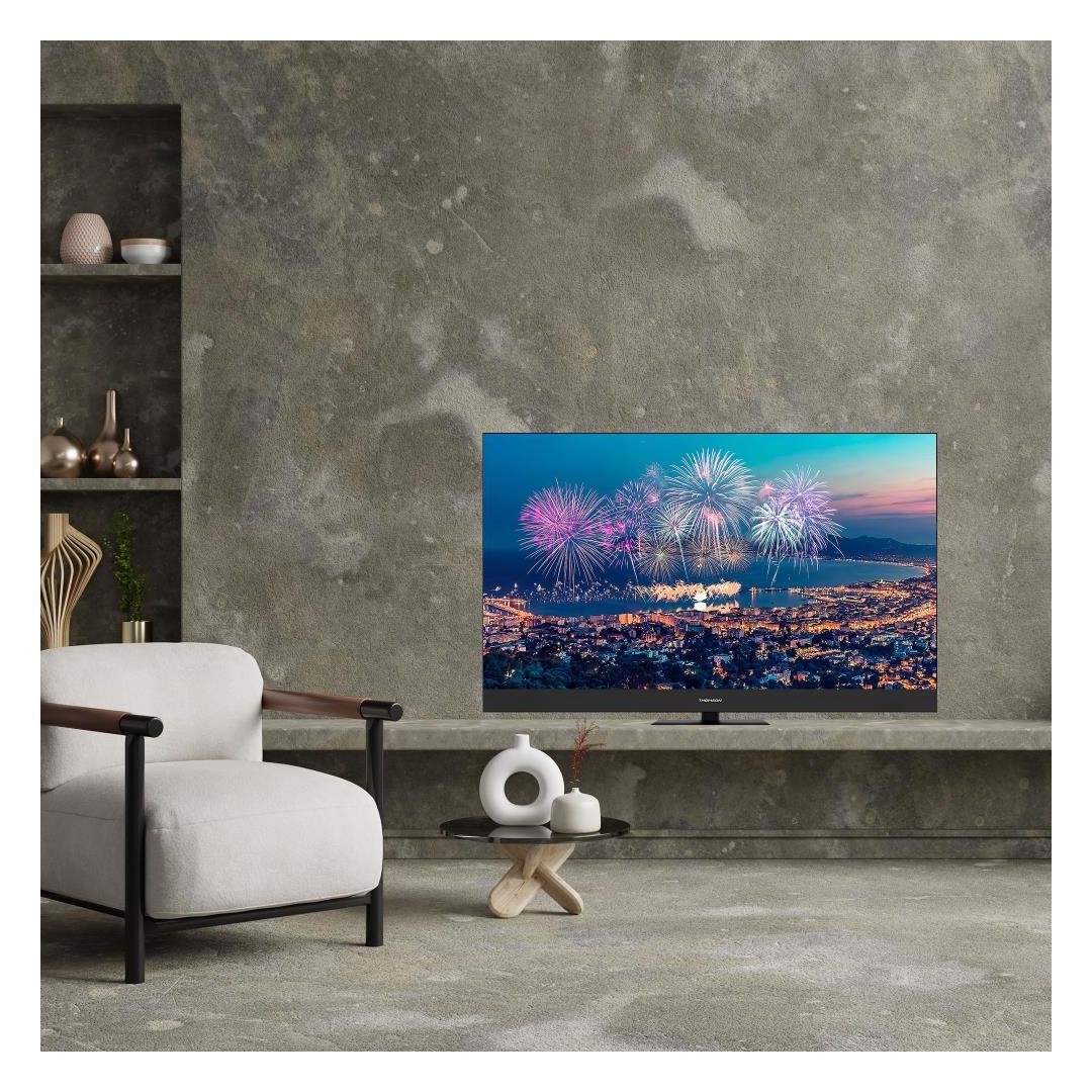 Enjoy your favorite entertainment in stunning 4K UHD quality and improved audio with your Thomson Google TV 50" QLED Plus. The integrated front speakers deliver a precise sound experience that lets you hear every detail of your favorite movies, shows, and music. Experience deep bass and clear highs that take your entertainment to a new level. Powered by Quantum Dot nanocrystals, a QLED display delivers balanced brightness, striking contrasts, and an expanded color range. Combined with 4K Ultra HD resolution you can capture every detail and immerse yourself in crystal clear images. Dolby Vision technology enhances the brightness in each scene, ensuring precise color reproduction for lifelike images. Enjoy dynamic audio with Dolby Atmos for an immersive TV experience. Google TV simplifies your entertainment experience by organizing content from your apps and subscriptions. Create multiple user profiles and benefit from curated recommendations. Enjoy a wide range of smart features, such as access to 400,000+ movies and TV shows, smart voice control with Google Assistant, and Chromecast built-in to stream content from compatible smart devices to your TV. The ergonomic remote control with smooth backlighting allows you to keep an eye on everything, even in dim lighting. The integrated Google Assistant enables you to intuitively control your TV with voice commands. Search for your favorite movies, ask for recommendations based on your mood, or control compatible smart devices - all with the convenience of your voice. Benefit from increased placement flexibility with the central swivel stand and enhance your viewing experience. The innovative design enables you to effortlessly rotate your TV by up to 30 degrees, allowing you find the perfect angle for your entertainment setup. The built-in triple tuner allows reception via satellite-antenna, terrestrial antenna, or cable. So, you can receive all available channels without additional hardware.