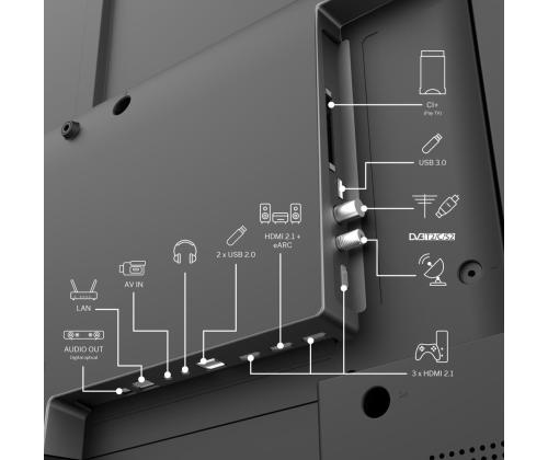 50"|4K/Smart|126cm|QLED|Form factor 16:9|Resolution 3840x2160|4xHDMI|2xUSB 2.0|1xUSB 3.0|1xOptical S/PDIF|1xHeadphones jack|1xRJ45|1xCI Slot|Speakers|Speaker Output 10W + 10W|Wireless LAN|Bluetooth|TV OS Google TV|200 mm x 200 mm|Colour Black|Energy efficiency class F