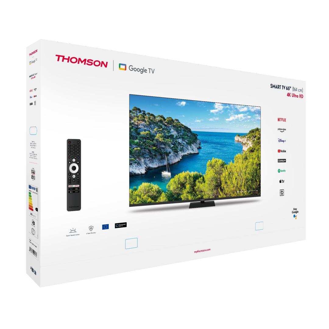 Thomson 65UG5C14. Display diagonal: 165.1 cm (65"), Display resolution: 3840 x 2160 pixels, HD type: 4K Ultra HD, Display technology: LCD, Screen shape: Flat, LED backlighting type: Direct-LED. Smart TV. Native aspect ratio: 16:9. Digital signal format system: DVB-C, DVB-S, DVB-S2, DVB-T, DVB-T2. Wi-Fi, Ethernet LAN. Product colour: Black