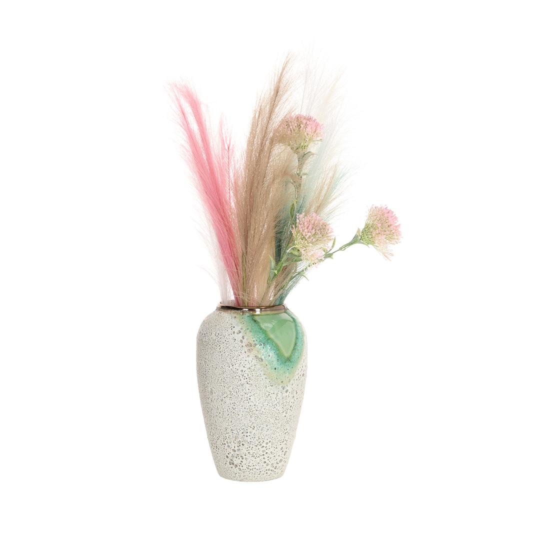 Ceramic vase TITAN STONE H27cm, green/white texture