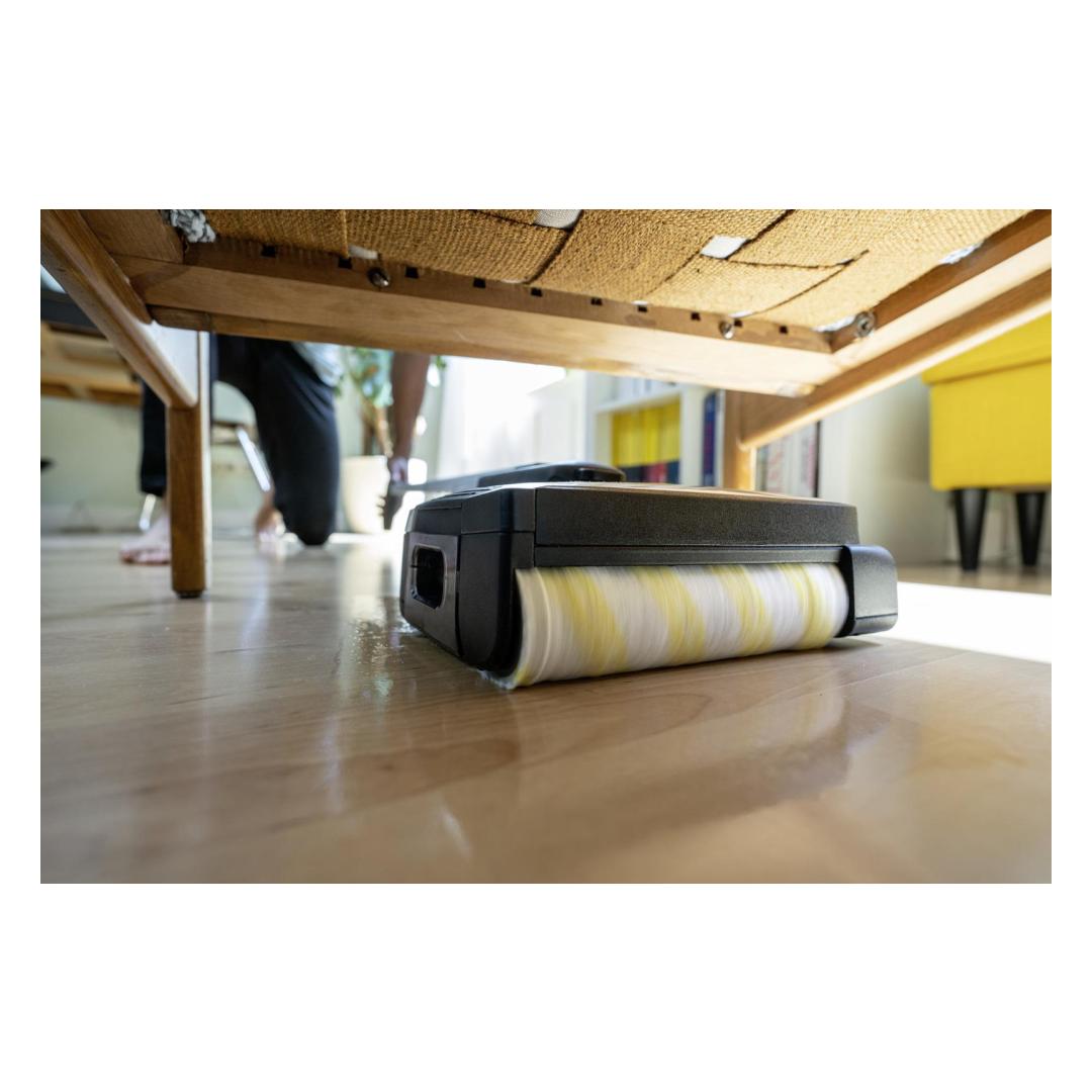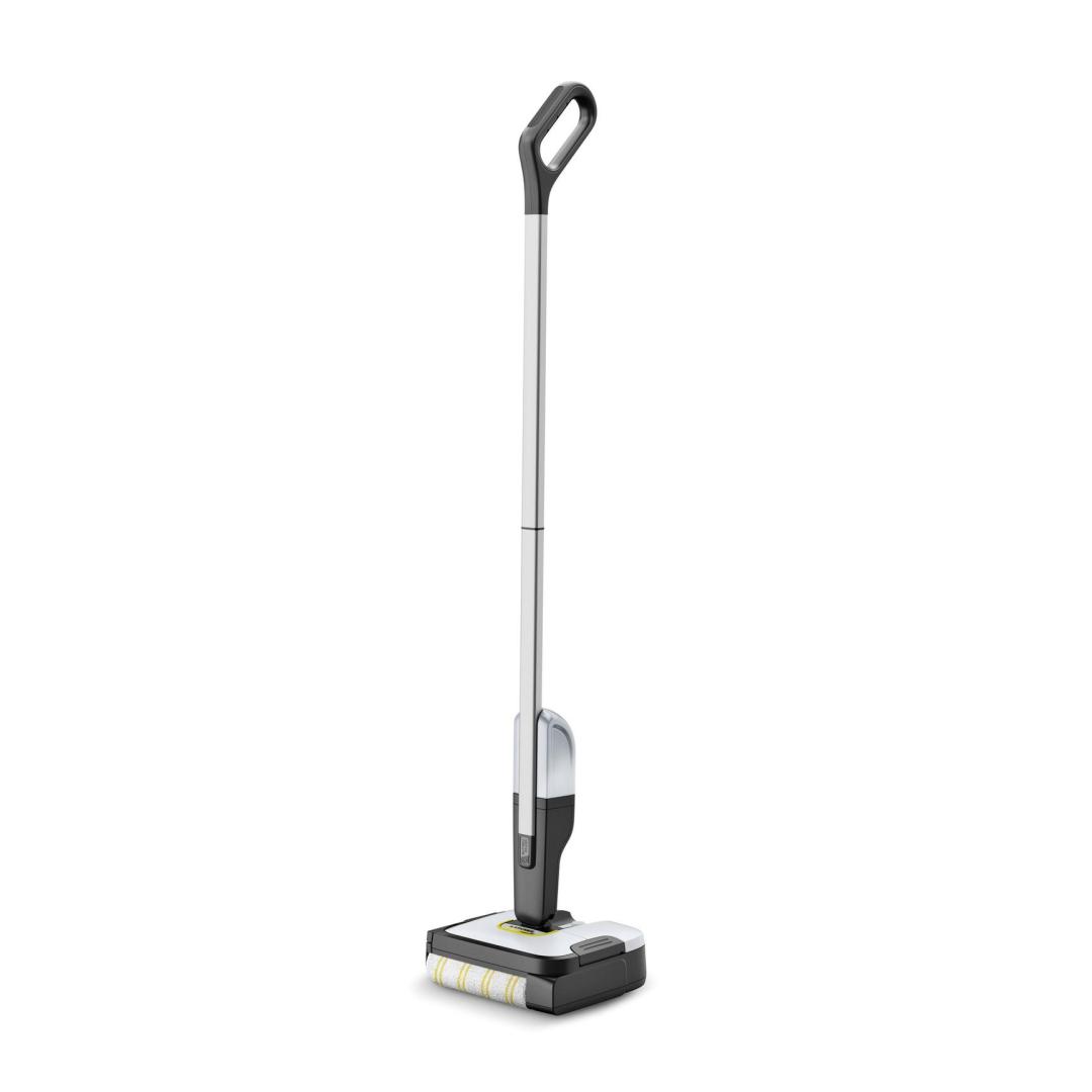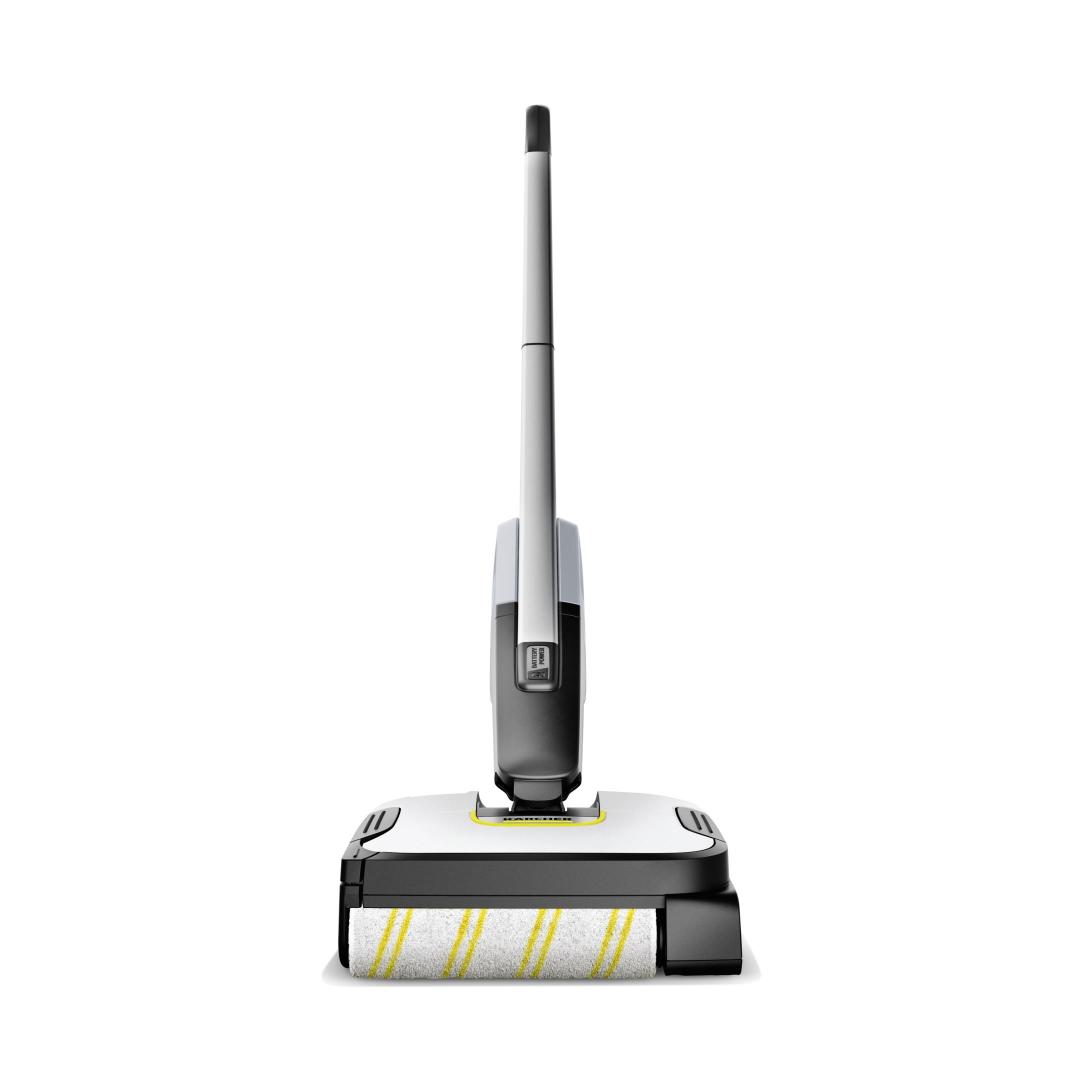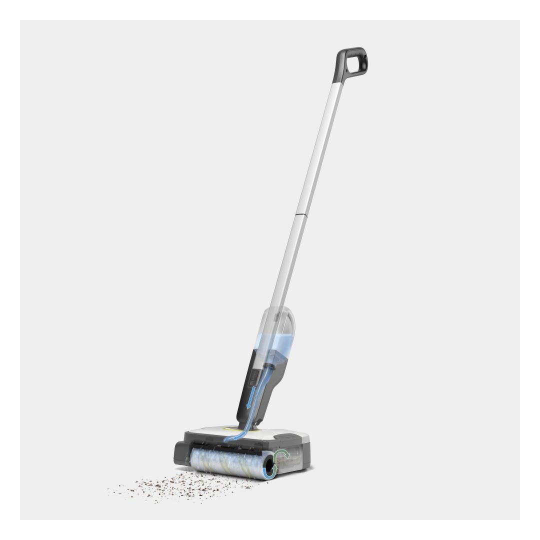 The FC 2-4 floor cleaner impresses with its self-standing design, a low weight of just 2.2 kilograms and automatic switching on and off. To do this, pull the handle of the cleaner backwards to start and remove dry and wet everyday dirt conveniently in just one step. The maximum battery run time per battery charge is 20 minutes, which corresponds to a cleaning area of 70 square metres. After the device is activated, the roller is automatically moistened with the water from the fresh water tank. This ensures even and effective cleaning of hard floors. It also cleans right up to the edge and picks up hairs easily thanks to integrated hair filters. The integrated, hygienic dirty water tank also means contact with dirt is avoided. This can be removed and cleaned directly after using the device. The included 4 V Kärcher Battery Power exchangeable battery is compatible with all 4 V Kärcher Battery Power devices.
